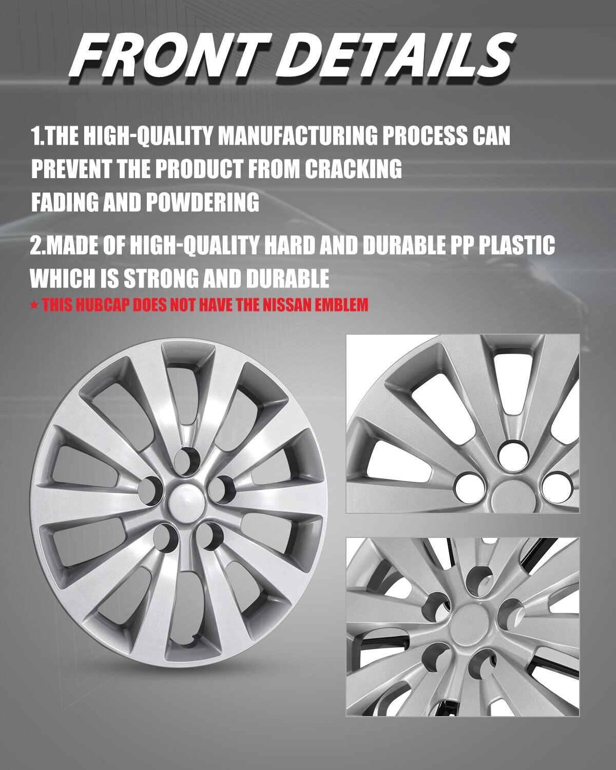 Store Categories Other Car Refrigerator Front Bumper Rear Bumper Fender Flares Inner Fenders Side Steps Running Board A-Pillar Light Mount Brackets Headlights Taillights Fog Lights LED Headlights LED Taillights LED Fog Lights Jeep Chevrolet Ford Toyota Dodge GMC Set of 4 16" Hubcaps: https://www.ebay.com/itm/405630335676 Wheel Covers Features ✴ PERFECT FIT: This wheel hub cap is specifically designed to perfectly fit for 16-inch wheels, ensuring a seamless match and enhanced aesthetics. It complements the overall design of the vehicle, elevating its visual appeal. ✴ HIGH-QUALITY MATERIAL: Constructed from high-quality materials, this wheel hub cap guarantees durability and longevity. It withstands various road conditions and environmental factors encountered during daily driving, maintaining its pristine condition. ✴ EASY INSTALLATION: Installing this wheel hub cap is a breeze and requires no specialized tools or modifications. It comes with a user-friendly system, allowing for a hassle-free installation process by following the provided instructions. ✴ PROTECTIVE FUNCTION: Besides its aesthetic appeal, this wheel hub cap serves as a protective barrier for the wheels. It prevents scratches and potential damage caused by stones, debris, or other objects, safeguarding the wheel's surface. ✴ AFTER-SALES SERVICE: If There Is a Loss of Product Parts, or Any Parts of The Problem, We Can Provide After-Sales Service, Please Contact Us on The Order Page. Wheel Covers Specification ✴ Type: Hub caps ✴ Number in Pack: 1 ✴ Color: Silver Lacquer ✴ Material: ABS ✴ Compatible Wheel Diameter: 16 in ✴ Finish: Glossy ✴ Installation Type: Snap-On ✴ Model: For 2013-2019 Nissan Sentra/For 2011-2017 Nissan Leaf Wheel Covers Package ✴ 1 Hub cap and 1 retention ring Payment Delivery details Terms of sales About us Contact us Payment We accept PayPal, credit card , Apple Pay & Google Pay etc. Delivery details All items will be shipped within 1-3 business days after payment received, we will try our best to ship out as soon as we can, hope for your understanding. Please double confirm your address and contact information, which will help the delivery faster and more accurately. Note :buyers who purchase international products need to pay import tariffs!!! Terms of sales Professional installation is highly recommended. Any problem of the item please feel free to contact us first , please D o Not leave negative feedback before that, or simply return it within 60 Days in original condition. We will resolve it for you ASAP. About us Any questions please do not hesitate to contact us directly by eBay message . We will reply you within 24 hours asap, thanks for your understanding. Contact us Should you have any problem or require any further information please feel free to contact us . If you are satisfied with our product and service, please kindly leave us a positive feedback. Popular Categories On Apr 17, 2025 at 19:55:47 PDT, seller added the following information: