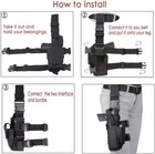 Product Description You may want to take your weapon with you while you hike. Sometimes a waistband holster just doesn't cut it. You may want to carry extra items like spare mags, a flashlight or tactical knife. Normally worn by military or outdoor types, the drop leg holster is great for lots of movement, and little person interaction. Drop leg holsters are primarily a military item that were designed for the battlefield. The point is to disperse your necessary equipment over a larger part of your body, making it easier to carry. Additionally, a drop leg holster makes it much easier to draw your firearm.It also comes into its own when you're wearing a rappelling harness. There is no point in extending your draw stroke and adding unnecessary weight to your legs (when your hips are better at carrying it) unless you're going to gain something from it. This style of holster definitely has distinct advantages, but they will only be realized when used in the right circumstances. Description: Type: Drop Leg Holsters Material: Nylon Size: 105mm x 50mm x 565mm Package: 1 x Holster(Left) 1 x Holster(Right) Specification: Used to hold handgun, pistol & revolver Can be attached in the wrist belt and fasten to the leg Fully adjustable wrap-around design for additional fit and security Adjustable non-slip leg straps minimize movement and provide maximum comfort Quick release buckle and Velcro strap make this holster fully adjustable Ideal for military, law enforcement, hunters, home /self defense and more How to Install Step 1 Take it out and hold your belongings. Step 2 Connect it to your belt and put onto your thigh. Step 3 Connect the two interface and buckle.