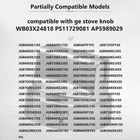 Specification: 100% Brand New Type: Range Control Knob Material: Stainless Steel Item Dimensions: 2.25 x 2.25 x 1.9 inches Shape: Round Features: Wide Application: Surface burner knob WB03X24818 lets you control the heat of the surface burner on the range. WB03X24818 Knob Replaces AP5989029, PS11729081 Compatible with ge gas stove. Applicable to the following models, not all: JGBS62REK1SS, JGBS66REK3SS, JGB860EEJ2ES, JGB860SEJ2SS, JGB860SEJ1SS, JGB720SEJ4SS, JGB720SEJ5SS, JGB645EEK2ES, JGB720EEJ4ES, JGB720EEJ2ES, etc. Check your furnace model and find out the part number of the knob that is campatible with it. Upgrade Quality: Our wb03x24818 gas stove knobs are made of highly durable materials, and the threaded mounting holes are reinforced with additional iron pieces, rigorously tested, compact & sturdy, heat resistance and wear resistance. After treatment, the surface of stainless steel has more texture and luster. Product Specification: Finish Type: Stainless Steel. Item Dimensions LxWxH: 2.25 x 2.25 x 1.9 inches. Shape: Round. This knob features bold markings for OFF, Lo, 1, 2, 3, 4, 5, 6, 7, 8, 9, Hi, and LITE. Our gas stove knobs which can help your stove look more uniform and beautiful. Easy Installation: Pull the knob directly from the column, remove it, and replace it with our knob. It is pretty easy to replace new parts on your model. Do not bend the knob up or down. If a handle is particularly stubborn, use pliers to remove it. Align the new knob holes and push them directly onto the shaft until they stop rotating. Repairing appliances by yourselves will save time and money. Please see Model Number fitment information at the bottom of this page before placing your order for this part. Model Number Description: GB645EEK1ES GAS RANGE JGB645EEK2ES GAS RANGE JGB660EEJ1ES GAS RANGE JGB660EEJ2ES GAS RANGE JGB660EEJ3ES GAS RANGE JGB660EEJ4ES GAS RANGE JGB660SEJ1SS GAS RANGE JGB660SEJ2SS GAS RANGE JGB660SEJ3SS GAS RANGE JGB660SEJ4SS GAS RANGE JGB700EEJ1ES GAS RANGE JGB700EEJ2ES GAS RANGE JGB700EEJ3ES GAS RANGE JGB700EEJ4ES GAS RANGE JGB700SEJ1SS GAS RANGE JGB700SEJ2SS GAS RANGE JGB700SEJ3SS GAS RANGE JGB720EEJ1ES GAS RANGE JGB720EEJ2ES GAS RANGE JGB720EEJ3ES GAS RANGE JGB720EEJ4ES GAS RANGE JGB720SEJ1SS GAS RANGE JGB720SEJ2SS GAS RANGE JGB720SEJ3SS GAS RANGE JGB720SEJ4SS GAS RANGE JGB860EEJ1ES GAS RANGE JGB860EEJ2ES GAS RANGE JGB860EEJ3ES GAS RANGE JGB860EEJ4ES GAS RANGE JGB860EEJ5ES GAS RANGE JGB860EEJ6ES GAS RANGE JGB860SEJ1SS GAS RANGE JGB860SEJ2SS GAS RANGE JGB860SEJ3SS GAS RANGE JGB860SEJ4SS GAS RANGE JGB860SEJ5SS GAS RANGE JGB860SEJ6SS GAS RANGE JGBS62REK1SS GAS RANGE JGBS66EEK1ES GAS RANGE JGBS66EEK2ES GAS RANGE JGBS66EEK3ES GAS RANGE JGBS66REK1SS GAS RANGE JGBS66REK2SS GAS RANGE JGBS66REK3SS GAS RANGE Package Included: 1 x Range Control Knob WB03X24818
