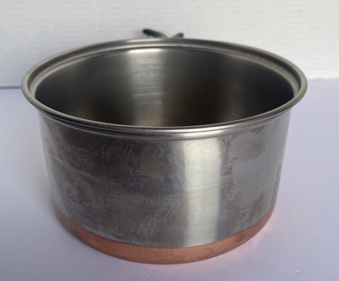 Camping 1Qt. Cooking Stainless Steel Cooking Pot Moveable Handles Copper Bottom. Condition is Used. Shipped with USPS Ground Advantage.