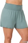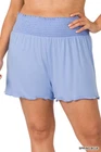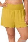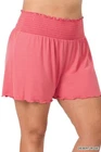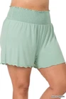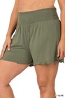 WOMEN'S SMOCKED WAIST SHORTS Description Premium poly rayon smocked waist shorts. Soft stretch fabric for all day comfort. - Fabrics: 57% Polyester, 38% Rayon, 5% Spandex Waist ~ 1X: 31-34" 2X: 33-36" 3X: 35-38" Measurements - Total Body Waist: 31" Approx. - Inseam: 3.5" Approx. ~ Measured from 1XL