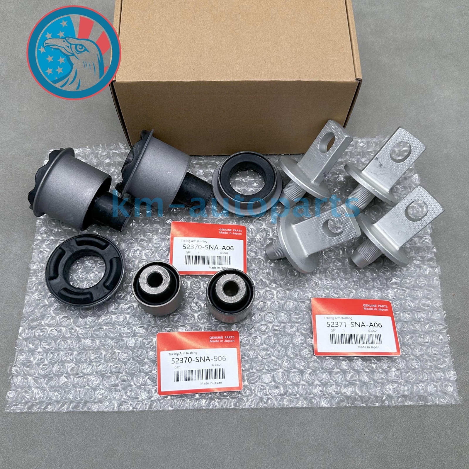 SAFE & SECURE SHOPPING 100% SATISFACTION GUARANTEED FAST SHIPPING You may also like OEM 3pcs Car Hood Support Prop Rod Holder Clip For Honda Accord Odyssey Prelude 7.22 USD Free shipping OEM 50x Fender Liner Retainer Fastener Clips 91512-SX0-003 For Honda New 7.67 USD Free shipping OEM! GAS CAP 310103L600 For 06-17 Hyundai Sonata Elantra Azera Santa Fe Veloster 12.66 USD Free shipping OEM! Solenoid Spool Valve Gasket Kit for VTEC K-series Honda CRV Accord Element 7.99 USD Free shipping OEM! New Gas Fuel Cap For Kia 31010-3L600U US 7.19 USD Free shipping OEM PCV Valve For 13-21 Honda Accord Odyssey Pilot Acura MDX 17130-RCA-A02 USA 7.56 USD Free shipping OEM! Rear Knucle + Trailing Arm Bushing Set Both Sides For Honda CIVIC 2006-2011 Product Description Product Description ● Condition: NEW ● Manufacture Part Number: 52370-SNA-A06, 52371-SNA-A06,52370SNAA06,52371SNAA06,52364-S5A-004 ● Compatible with: For Honda Civic - Sedan - Coupe 2006-2011 Package included: Rear Knucle + Trailing Arm Bushing Set (As Picture ) Notice : 1. If you are not completely satisfied with your purchase, you may return it for a refund or exchange it for a replacement. We only require that you contact us within 14 days of receiving your item and return it in the same condition it was received. 2.Please check the model before your purchase and compare the position of the screw hole In case of wrong purchase. 3.If you have any questions, please contact us by email and we will solve them for you. Payment Shipping Returns Feedback About US Payment Paypal Preferred. Local pickup NOT available at this time. Shipping 1.We generally ship with usps and Fedex. 2.Your item will be carefully packed and shipped within 3 business day after payment received. 3. Package transit time: please expect 3-7 business days within US. Buyer need express mail service please contact us before placing the order. International transportation services are temporarily not available. Returns 1. Please read the item description and check the pictures carefully before bidding. Return or refund is available only if item DOA or there's error in item description causing the item not fitting your need. In such cases, seller pays for all related shipping cost if any. 2.Returns are also acceptable if buyer purchased this by mistake and item still in good condition for reselling. Buyer is responsible for all related shipping cost. Feedback 1. Please leave positive feedback to us if you are satisfied with the goods. 2. If you are not satisfied, please contact us immediately and we will try our best to give you a perfect answer at the first time. 3. Please feel free to contact us via the ebay messages system, if you have any question, we will assist you ASAP. About US If you're looking to buy in bulk or looking for a long term part supplier, please contact me directly. We will provide you the best products and service. Put off your doubts and fears and thusrest assured purchase. We offer 100% Customer Satisfaction , if you have any questions , please let us know and we will do our best to rectify the situation . We fully stand behind with all the items that we are selling ! When you receive your item , please leave positive feedback , we rely on you for our good name