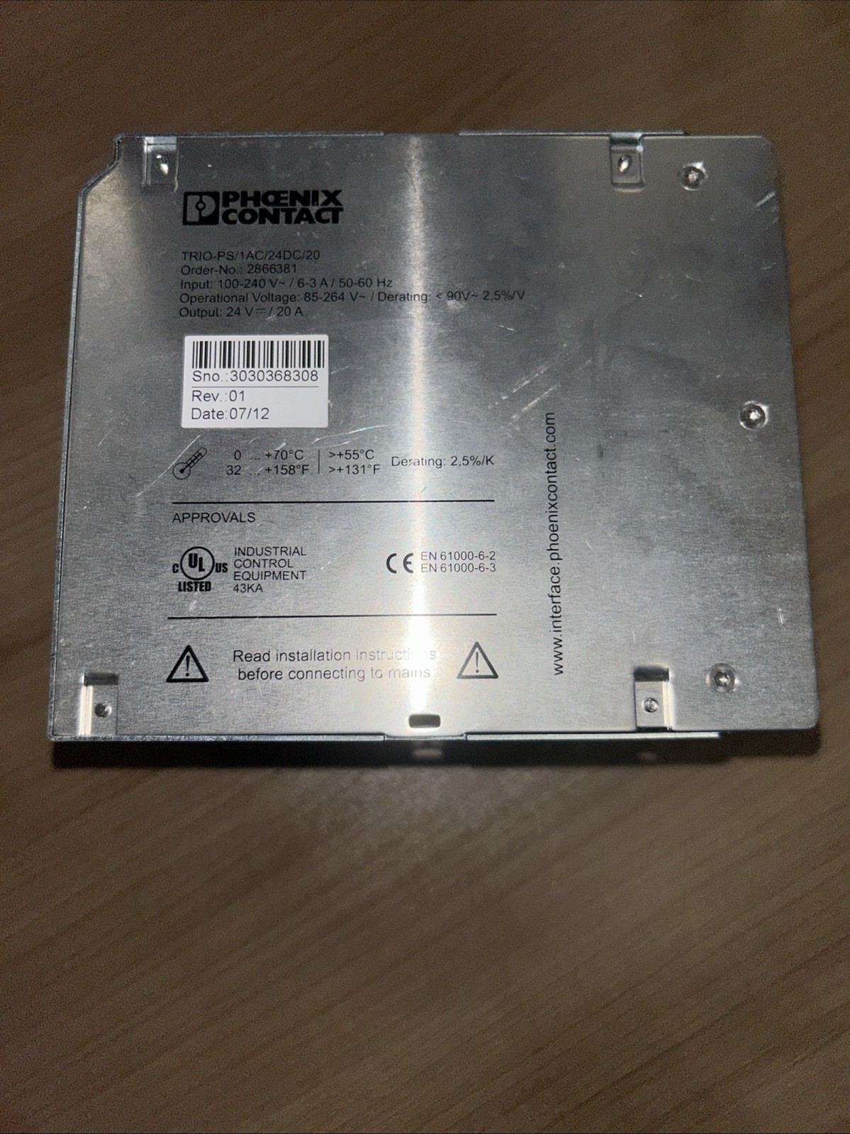The product is a single Phoenix Contact TRIO-PS/1AC/24DC/20 switching power supply DIN rail mount with a nominal current rating of 20 A, output voltage rating of 24 V, and a nominal power rating of 480 W. It is a reliable and high-quality power supply designed for industrial use, ensuring efficient and stable power distribution in electrical systems.