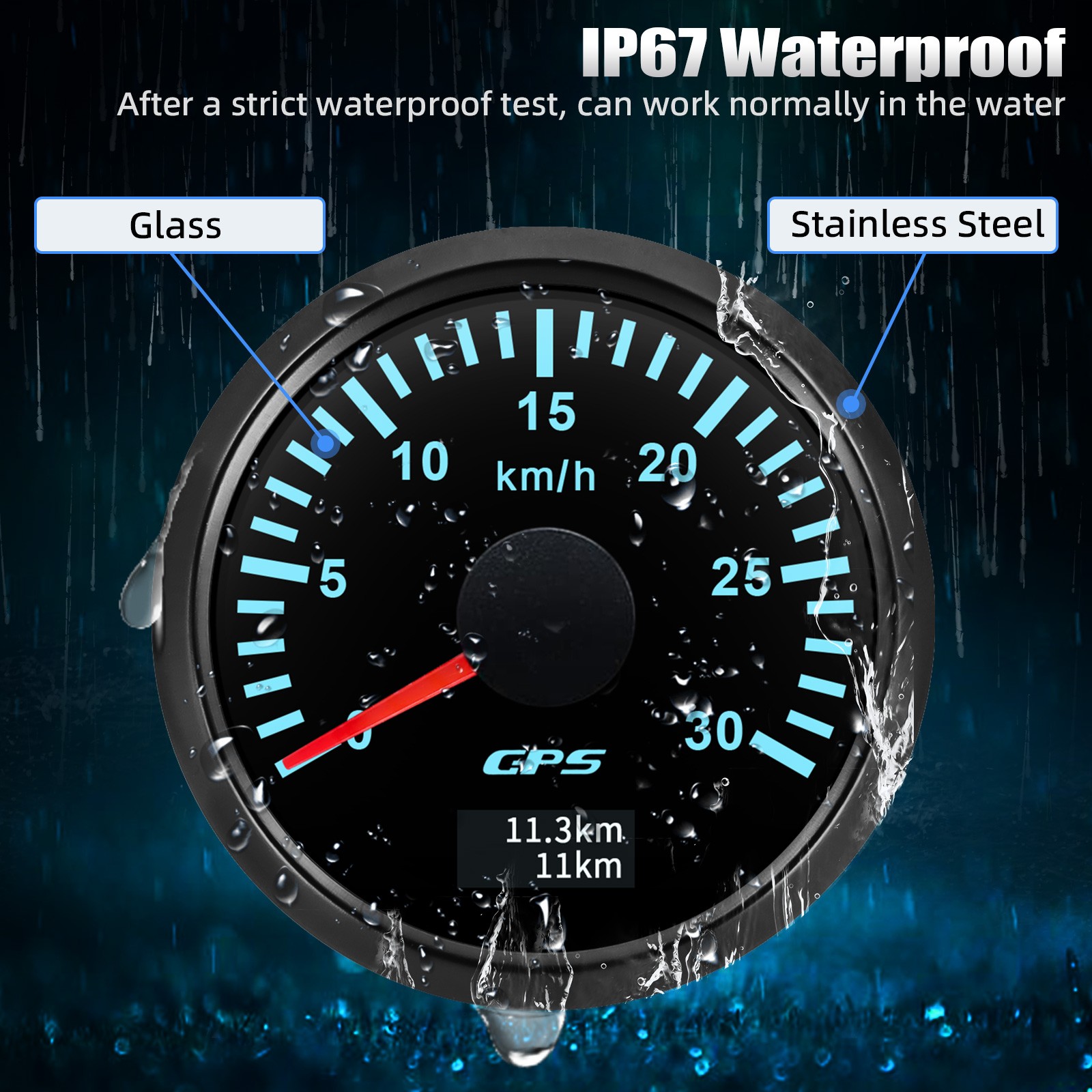 2" 52MM GPS Speedometer 0-30km/h Gauge for Motorcycle Boat Car Truck Waterproof 52mm Digital GPS Speedometer Speed Odometer Gauge 0-30Km/h for Car Boat Truck Specifications Item Name: 52mm GPS Speedometer Gauge 0-30Km/h Dial: Black Material: Stainless Steel 316L Bezel + Anti-fog Glass Install Diameter: Φ52mm or 2" Signal: GPS Working Voltage: 9~32V DC Working Current: ≤100mA Operating Temperature: -30℃ ~ 75℃ Storage Temperature: -40℃ ~ 85℃ IP67 waterproof and dustproof grade Indication Range: 0-30Km/h Backlight:7 Colors Backlight Product Descriptions High-brightness LED backlight. 316 stainless steel for long-term use even in acid-base, humid environment. IP67 waterproof and dust-proof grade. With curved glass( with anti-fog function). Suitable for all kinds of vehicle modification. Using stepper motor drive pointer, accurate display of the engine speed, and with the LCD display clear display mileage. Gauges have many kinds backlight color (red,yellow,orange,green,blue,purple,white),customers can adjust any color that you like. Connection: Black: Ground(-) Red: 9-32VDC Blue: Adjust Yellow: Backlight Package Includes: 1X 52MM Digital GPS Speedometer Gauge 1X Instruction 1X Wire Harness 1X GPS Antenna