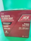 Illuminate your indoor and outdoor space with this top-of-the-line ACE halogen floodlight. With 90 watts of power, this floodlight provides 1325 lumens of bright light, making it perfect for enhancing your home's security and outdoor ambiance. The PAR38 bulb shape code ensures a wide and even distribution of light, while the 120 V voltage makes it compatible with both indoor and outdoor installation areas. Designed for ease of use, this floodlight features a simple installation process and is perfect for outdoor lighting in your yard, garden, or other outdoor living spaces. With two lights included, you can rest assured that your home and outdoor area will be well-lit and secure. Upgrade your home's lighting technology with this high-quality ACE halogen floodlight today! Our merchandise has been generously donated by the friends and families of Community Mainstreaming Associates (CMA). All proceeds from the sale of this item benefit CMA, a 501c3 charity supporting adults with intellectual and developmental disabilities. Thank you for your support.