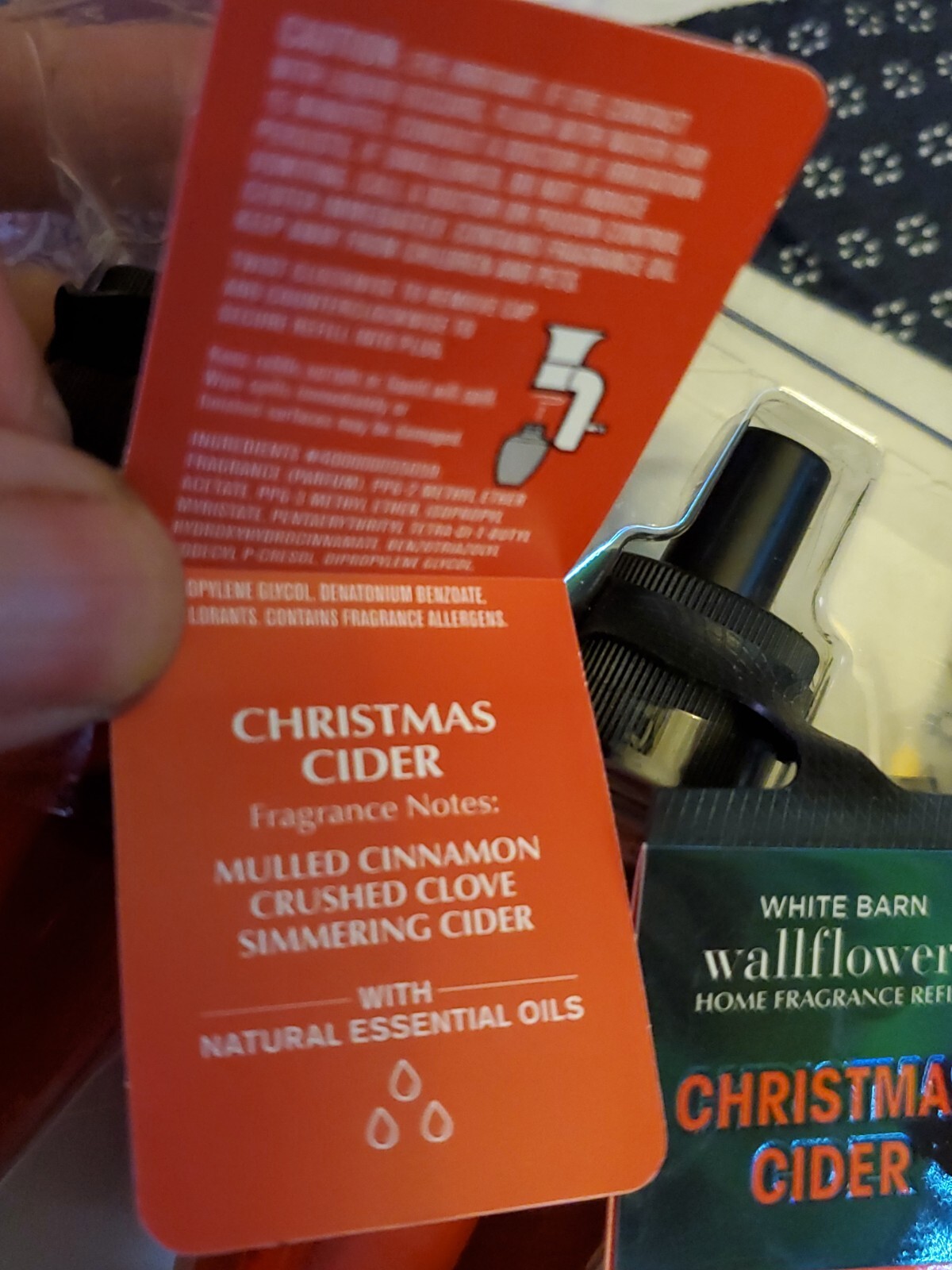 Bath & Body Works White Barn Christmas Cider Key Notes: *Mulled Cinnamon *Crushed Clove *Simmering Cider 2 pack Wallflower Refill Bulbs Natural Essential Oils Smells Like Christmas Weeks of Effortless Fragrance. Smells Amazing!!