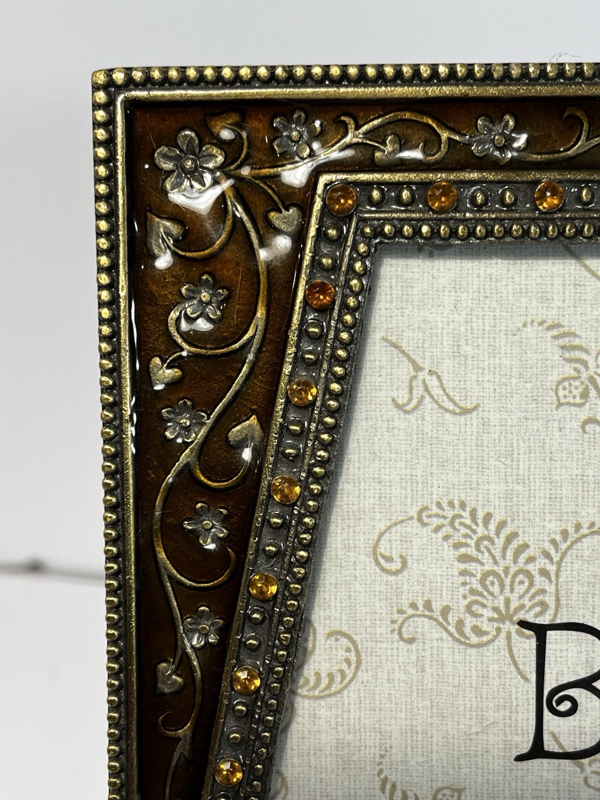 Set of two beautiful enamel embellished picture frames. Very ornate. Backs are felt easel style. One frame is 4” x 6” and the other is 4” x 4”. In excellent condition. Ships the next business day after payment😊