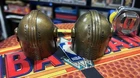 The product is a set of two bronze 3D Mandalorian helmets Navy Chief CPO challenge coins. These challenge coins feature a Mandalorian helmet design in 3D and are made of bronze.