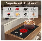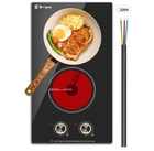【Knob Controlled Electric Stove】Compared with other multi-functional sensor touch controlled electric stoves, this knob controlled electric cooktop is easy to operate and use, without complicated buttons or functions, especially convenient for the elderly or any people with poor eyesight, and the knobs are smooth and easy to accurately control the heat. 【9 Power Levels Electric Cooktop】This electric radiant cooktop has 9 power levels, whether it is braised, fried, stewed, or steamed, boiled, fried, roasted, the precise temperature changes can be controlled by knobs, 2 burner electric cooktop making cooking easy, the heating effect of the electric ceramic cooktop is the same as that of the gas stove, and the food made is as delicious as the gas stove. 【Safety 2 Burners Electric Cooktop】Our ceramic cooktop has safety functions, such as residual heat warning and over-temperature protection, when the temperature of the surface is too high, the digital display will show "H" code, it works by infrared heating and has no electron magnetic radiation,can also be used by pregnant women. 【Compatible With Various Cookwares】Doopen electric radiant cooktop is suitable for aluminum pans, copper pans, cast iron frying pans and non-magnetic stainless-steel pans, please install according to the user manual&care guide, whether you want to grill on a griddle, boil soup in a saucepan or sear a steak in a pan, this electric cooktop heats up evenly and quickly. 【Built In and Countertop Cooktop】 If you want to install this 12-inch electric stove built-in, please note that the built-in dimensions are 19.3"x10.6" (L*W) .The size of this electric cooktop is 11.4"x 20.5"x 2.3"(L*W*H), this electric cooktop also comes with 4-foot pad to make it a countertop.
