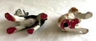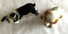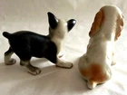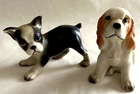 2 CERAMIC PUPPY FIGURINES Playful Boston Terrier & Sitting Cocker Spaniel Black and White Boston Terrier playful standing puppy has Norleans Japan sticker on the bottom - see photo Size about 3 inches wide and 2.25 inches tall Off White and Light Brown Cocker Spaniel sitting puppy has no marking on bottom Size about 3 inches tall and 2.5 inches wide Both are Vintage Cocker Spaniel early 1970s, Boston Terrier is 1960s