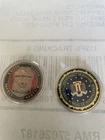 2 coins brand new in plastic sleeve One is US home land security, secret service coin Copper looking Two is US department of justice FBI coin with Washington DC on back has gold color in it plus 2 dust specks on back Diameter is 1 5/8” Weighs together 69 grams I believe challenge coins