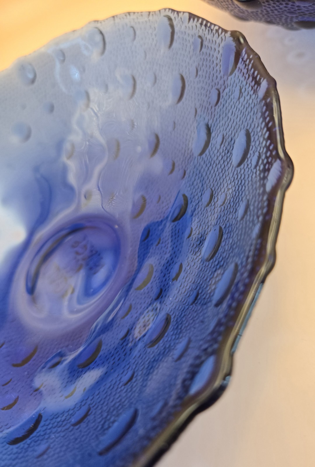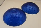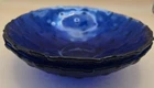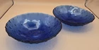 This set of two cobalt blue textured salad bowls, originating from Spain, is an antique vintage piece with a bubble pattern and round shape. Made of glass and produced with a glossy finish using fused glass techniques, these decorative bowls are perfect for all occasions. Handmade in the late 20th century, they carry an marked brand and require hand wash care. The vibrant blue color and unique features make them a stylish and eye-catching addition to any table setting. One bowl has a visible scratch that you can see on the inside of bowl. See photo, the other bowl is clear from chips or scratches. I've lowered the price from $40 to $30. Thank you for looking.