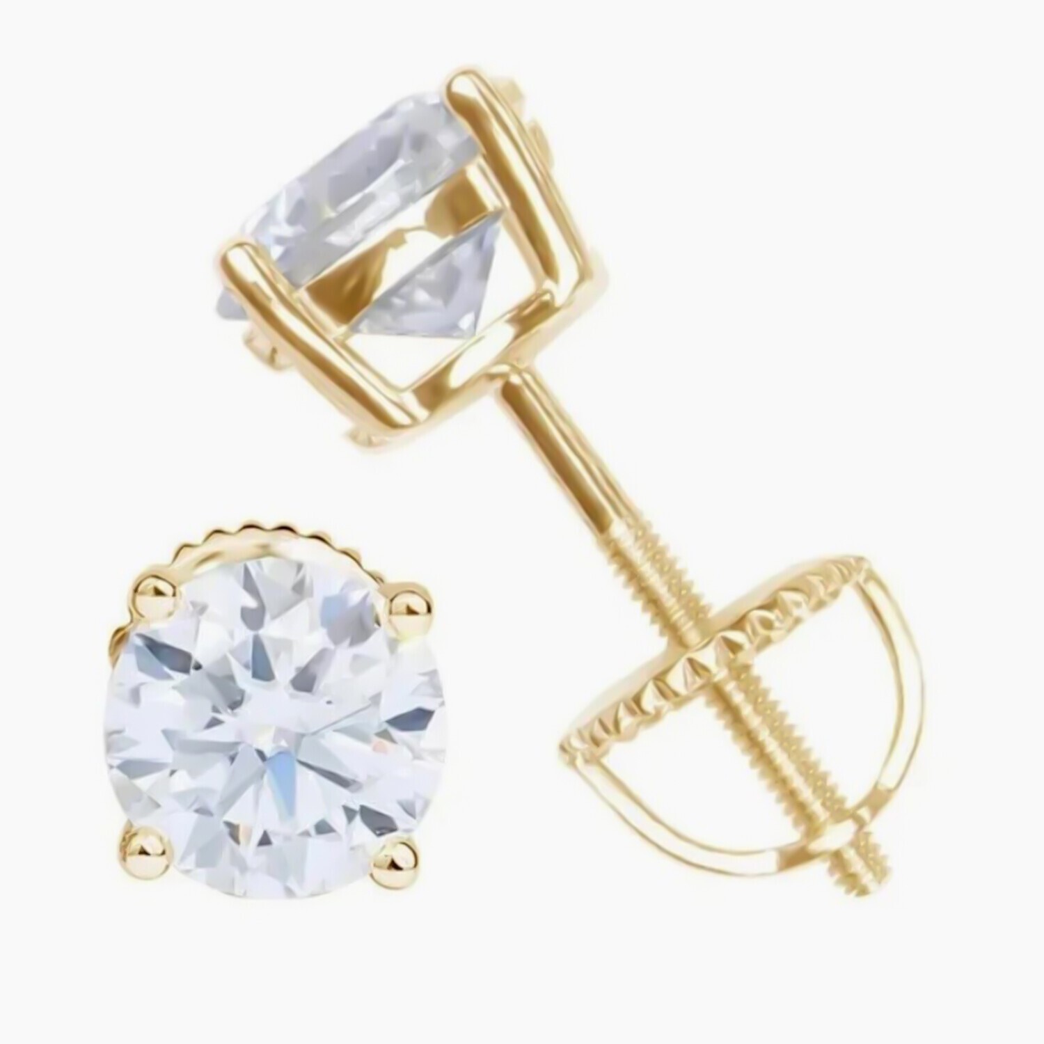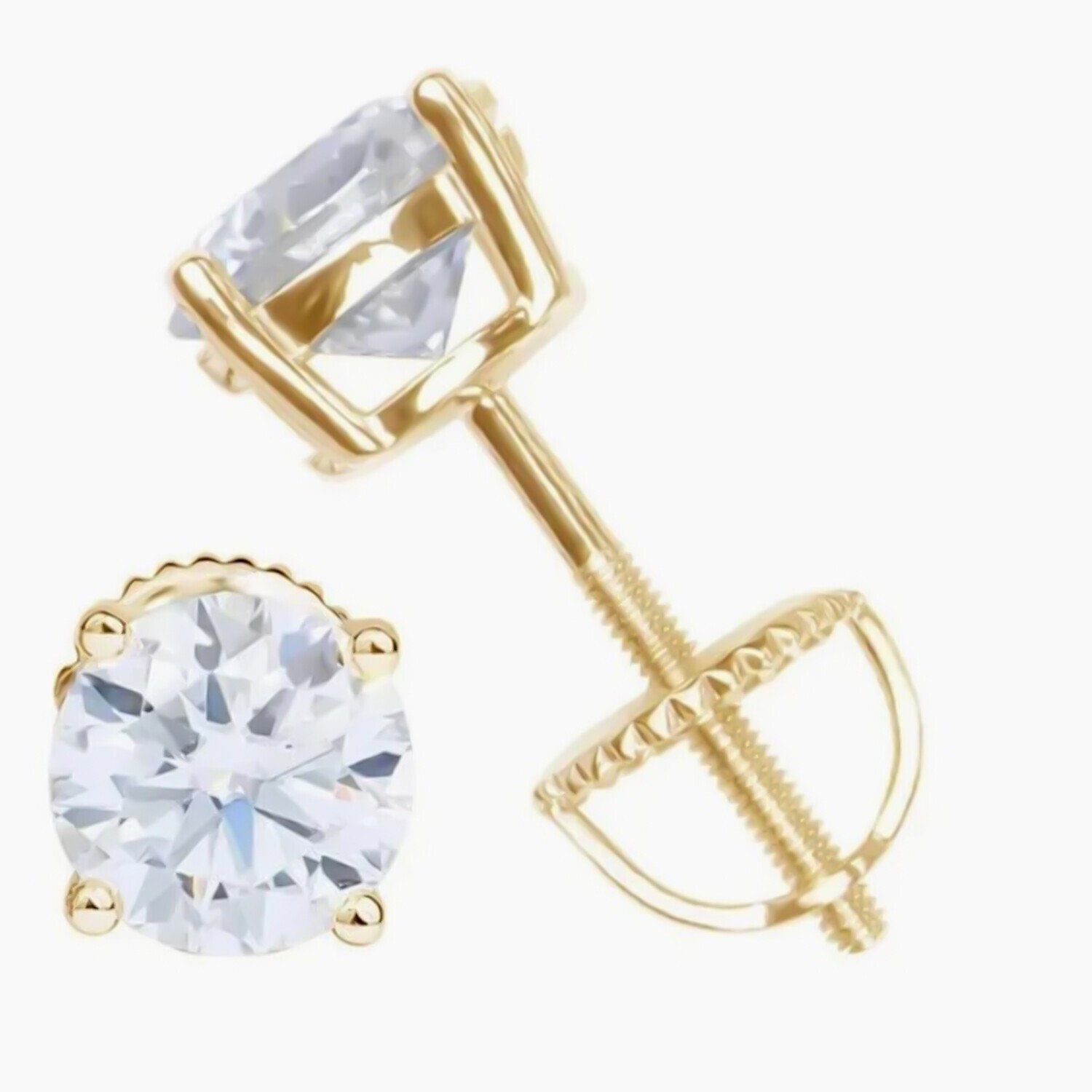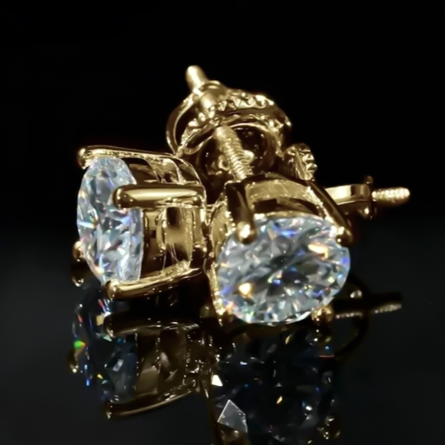 4.00 Ct Certified White Diamond Solitaire Studs In Yellow Gold Finish 925 Silver