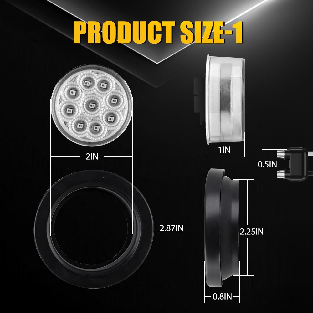 Fit for: Universally fit any vehicles with DC 12V-24V such as Semi Truck & Trailer, Service Truck, Bus, Service Van, Utility Truck, Parade Float, Horse Trailer, Utility Trailer, Pick Up Truck, UTE, UTV. Specifications: Product Material: ABS+PC Suitable Voltage: 12-24V Lens Color: Clear Light Color: White Wiring Connections: White Wire: Negative Black Wire: Positive Connector Type: Pigtail Mounting Type: Flush-Mount Waterproof Rate: IP67 Lifespan: 50,000h+ Features: *High Brightness Each LED light bright enough and energy-saving. *Superior Quality 2" 5pcs Inch DOT Clear 9 Round Trailer LED Marker Light w/ Grommet for Truck RV Fit for: Universally fit any vehicles with DC 12V-24V such as Semi Truck & Trailer, Service Truck, Bus, Service Van, Utility Truck, Parade Float, Horse Trailer, Utility Trailer, Pick Up Truck, UTE, UTV. Specifications: Product Material: ABS+PC Suitable Voltage: 12-24V Lens Color: Clear Light Color: White Wiring Connections: White Wire: Negative Black Wire: Positive Connector Type: Pigtail Mounting Type: Flush-Mount Waterproof Rate: IP67 Lifespan: 50,000h+ Features: *High Brightness Each LED light bright enough and energy-saving. *Superior Quality Made of high quality material to ensure its low energy consumption, good waterproof and shock resistance. *Waterproof The light has IP67 waterproof rate, which works even under extreme conditions such as rain and snow. *Wide Application This LED light can be used in any vehicle with DC 12V-24V, such as a Semi Truck and trailer, Service Truck, Bus, Service Van, Utility Truck, Parade Float, Horse Trailer, Utility Trailer, Pickup Truck, UTE, or UTV. *Warm Notice Please check the detail information of the product carefully before purchasing. Packaging Include: 5 x 2" Round 9 LED Clearance Side Marker Light 5 x 2.8" Round Black Grommet 5 x 2-Pin 90° Plugs Connector Item Specifics Brand : Unbranded Fitment Type : Direct Replacement Finish : New Type : Light Bulb Manufacturer Warranty : 2 Year Universal Fitment : No Country/Region of Manufacture : China Lighting Technology : LED Suitable For : Tail Light Number of Bulbs : 5 Light Color : White Product Material : ABS PC Suitable Voltage : 12-24V Black Wire : Positive White Wire : Negative Connector Type : Pigtail Mounting Type : Flush-Mount Lens Color : Clear Waterproof Rate : IP67 Lifespan : 50,000h+ Features 1 : High Brightness Features 2 : Superior Quality Features 3 : Waterproof Features 4 : Wide Application Features 5 : Warm Notice Packaging Include 1 : 5 x 2" Round 9 LED Clearance Side Marker Light Packaging Include 2 : 5 x 2.8" Round Black Grommet Packaging Include 3 : 5 x 2-Pin 90° Plugs Connector Payment (1) Instant PayPal payment is the preferred method of payment. (2) We also accept payment via PayPal, DebitCard, Visa, MasterCard, Discover. (3) We will only ship to the confirmed PayPal shipping address given with the payment. (4) If you want to ship to other address, please change your PayPal shipping address before you make payment. (5) To avoid initiating an unpaid item claim, please pay within 7 days. Shipping (1) We will ship your item(s) within 24 hours. (2) We ship this item to US usually via USPS first class mail. It usually takes 3-6 working days to deliver. Returns (1) We offer free return & money back guarantee. If you are not satisfied with your purchase for any reasons, you can return the item for refund or replacement/exchange. All returns must include the original packaging. (Please refer to our return policy for details.) (2) If you don't return goods within 60 days from date of purchase, your right to cancel will be revoked. Any items damaged because of incorrect installation will not be refunded. Please contact us for return or troubleshooting help prior to returning any products. (3) Unauthorized reselling of AUXITO products is strictly prohibited and we can't honor the warranty if purchasing from the unauthorized reseller. Contact Us [Our office hours are MONDAY - Saturday 9:00PM - 6:00PM PST, but we will response you once we get your message .There will be some delay on respons if you send message or E-Mail on Sundy.] (1).Negative feedback will not help resolve any problems you have, please contact us via eBay messages before leaving negative feedback, our customer service will make best effort to help you with the issues. (2).We maintain high standards of excellenceand strive for 100% customer satisfaction! Feedback is very important to us. We request that you contact us immediately BEFORE you give us neutral or negative feedback, so that we can satisfactorily address your concerns. FAQ Why swith to LED? LEDs not only give your vehicle a clean, modern look but, with proper use, will outlast any halogen bulb and HID bulb! Low energy draw, high lumen output, and instant on/off LED technology out shines stock bulbs in every way. Which bulbs are used in my vehicle? Check Sylvania automotive lamp replacemnt guide, you can select the year, make, and model of your vehicle, then select the application you want to replace or upgrade from stock. What does CAN Bus mean? CAN Bus means Controller Area Network Bus. This system monitors your vehicle and reports operating conditions. CAN Bus systems are commonly found in European vehicles such as BMW, Audi, Mercedes, Volkswagen, Porsche, and in many American vehicles. While most late model American vehicles have CAN Bus systems, it is always good to check with your vehicle dealer to see which system your vehicle has before purchasing electrical products. When do you need Warning Canceller? Some vehicles with cmplex internal computers(such as Audi,BMW,Jaguar,Mercedes,etc.) might report on-dash errors or flickering on the headlights. The warning canceller fixes the dashboard warning and flickering effect. Bulb Out Dashboard Error: On some vehicles, the dashboard will report as if you have a headlight bulb missing or burnt. It does not affect the headlights functioning, but the light on-dash will be on. The warning ca
