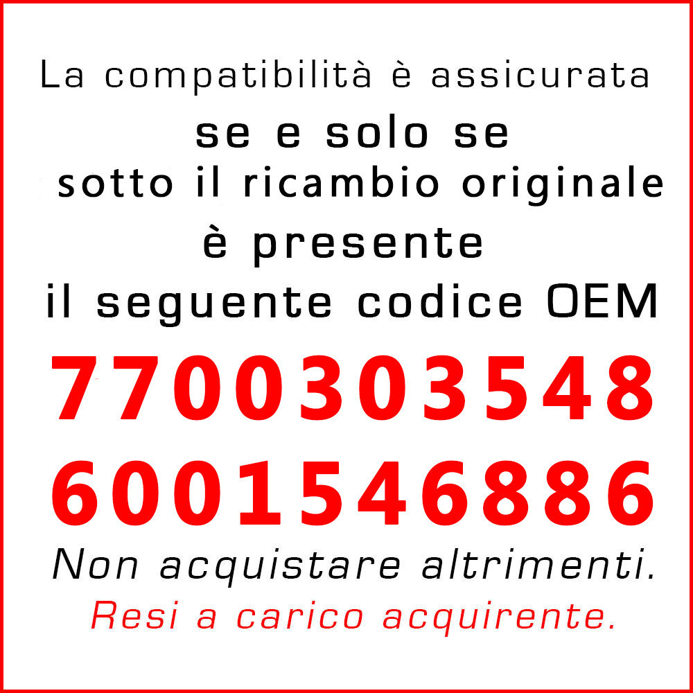Vinciann Negozio Altre strepitose occasioni (clicca sull'immagine) Spedizioni Rapide Le spedizioni sono molto rapide. Spedisco sempre entro 24 ore dalla ricezione del pagamento. Spesso entro poche ore. Aggiungimi ai venditori preferiti 2x Tirante ferma porta anteriore destro o sinistro per Renault e Dacia P8FO 🧰 Compatibilità veicoli: • DACIA Logan I Pick-up (2008 – 2013) • RENAULT Sandero / Stepway I (2007 – 2024) • RENAULT Logan Pick-up (2008 – 2024) • RENAULT Kangoo I (1997 – 2024) • RENAULT Kangoo I Express (1997 – 2024) ⚙️ Caratteristiche tecniche: • Ricambio: tirante fermaporta sportello anteriore (bilaterale destro o sinistro) • Codici sostituiti : 6001546886, 7700303548 • Materiale : Metallo ad alta resistenza • Colore : Argento • Prodotto compatibile, non originale , ma con ottima qualità costruttiva • Ricambio ideale per sostituire tiranti rumorosi, danneggiati o bloccati 📦 Informazioni prodotto: • In confezione bulk per la massima convenienza • Nuovo , in magazzino , pronto per la spedizione immediata e tracciabile dall’Italia con Corriere Espresso 📌 Nota importante: Ti invitiamo a confrontare attentamente forma, misure e immagini con il pezzo originale prima dell'acquisto per garantire la corretta compatibilità. Spedizioni sicure ed assicurate È un prodotto nuovo , disponibile in magazzino (in Italia) e pronto per la spedizione immediata, tracciabile . Il servizio di spedizione che vi offriamo è sicuro, garantito e - ribadiamo - tracciabile, a differenza di Posta Prioritaria, servizio tanto economico quanto inaffidabile circa la consegna dei prodotti. Con noi potete rilassarvi! Le nostre spedizioni sono tutte assicurate fino all'intera spesa effettuata. In caso di incidenti riceverete un rimborso completo o procederemo ad una nuova spedizione. Contatti Per qualsiasi dubbio o domanda su questo ordine non esitare a contattarmi ed a chiedere ulteriori spiegazioni.