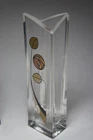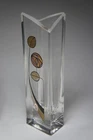 You are viewing 2 x Glencairn Crystal Art Glass Bud Vases Rennie Mackintosh design Size - The larger one is 28cms tall. The smaller one is 14.5cms tall. Both are 5cms width x 3.5cms deep They both have the same Rennie Mackintosh design to the front and the Glencairn label to the bottom right. Condition - Both are in excellent condition with no cracks or chips. The larger piece has rubbing to the gilding as indicated with the arrows in photo 2 Any questions please ask
