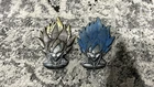The product is a set of two original Goku Navy Chief CPO challenge coins. These challenge coins fall under the theme of Militaria and are collectible items. The design features the character Goku from the popular anime series Dragon Ball, portrayed in a Navy Chief CPO style. The blue one glows in the dark.