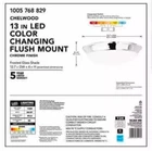 About This Product The technology of this 13 in. 25-Watt Chrome Ceiling Flushmount has a 90 CRI high color rendering that creates a perfect illumination and makes this fixture completely glare free providing more natural light for your home or office. The long-lasting LED technology provides light output equivalent to 180-Watt of traditional incandescent lighting, while using less than 20% of the energy for year round savings. If features a selectable color temperature feature which allows you to choose your preferred white light color: soft 2700K, warm 3000K, bright 3500K, cool 4000K, or daylight 5000K. Enjoy a 5-year warranty and a rated life of 45-years or 50,000-hours of continuous use. The Energy star certified light source is maintenance free with no bulbs to change. 2000K to 3000K: gives off a soft white glow, often yellow in appearance, best for living rooms, dining rooms, bedrooms and outdoor spaces 3100K to 4500K: gives off a bright amount of white light, best for kitchens, offices, work spaces and vanities where task lighting is needed 4600K to 6500K: gives off a bright amount of blue-white light, similar to that of daylight, best for display areas and work environments where very bright illumination is needed Brightness: 1328 Lumens Assembly and installation parts included Dry rated: a dry location is an indoor area that is not normally subject to dampness Streamlined design is ideal for above-the-door application Compatible with many LED wall dimmers ENERGY STAR