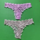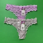 Home2 Hers By Herman Lace Thongs Grey/purple Floral Size Small Scalloped Edges New