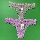 2 Hers By Herman Lace Thongs Grey purple Floral Size Large Scalloped Edges New.