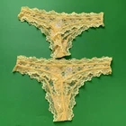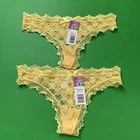 2 Hers By Herman Lace Thongs Yellow Floral Size Small Scalloped Edges New