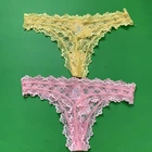 2 Hers By Herman Lace Thongs Yellow/Pink Floral Size Large Scalloped Edges New.