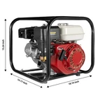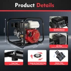Description Are you still worried about watering your farm too slowly? This 6.5HP irrigation water pump will help you get your watering done very quickly and well. It has an aluminum pump body for greater durability and long service life. The extra power and large flow rate will allow you to work more efficiently. Key Features Great Durability: It is mainly made of high-quality aluminum and iron, and has undergone spraying and welding processes, so it has good wear resistance, corrosion resistance, high temperature resistance, and impact resistance, making it very sturdy and durable. High Efficiency: It adopts a powerful four-stroke OHV engine, which can generate more power. The 6.5hp, 210cc engine has a high speed of 3600r/min, achieving a 1271.33ft³/h hourly flow rate, 23ft self suctio 2" Inch 6.5HP Gas Water Semi Trash Pump Gas-Power Water Irrigation Transfer Pump Description Are you still worried about watering your farm too slowly? This 6.5HP irrigation water pump will help you get your watering done very quickly and well. It has an aluminum pump body for greater durability and long service life. The extra power and large flow rate will allow you to work more efficiently. Key Features Great Durability: It is mainly made of high-quality aluminum and iron, and has undergone spraying and welding processes, so it has good wear resistance, corrosion resistance, high temperature resistance, and impact resistance, making it very sturdy and durable. High Efficiency: It adopts a powerful four-stroke OHV engine, which can generate more power. The 6.5hp, 210cc engine has a high speed of 3600r/min, achieving a 1271.33ft³/h hourly flow rate, 23ft self suction height, and 92ft lift. and efficiently completing various irrigation and drainage tasks in a shorter amount of time. Long-term Endurance & Energy Saving: The 0.95gal fuel tank allows you to work for a longer time at once, saving you time and effort. A high-quality carburetor allows for better fuel combustion, ensuring a fuel consumption rate of 360ml/kw.h, and reducing fuel consumption. Good Heat Dissipation: The forced air-cooling system and the dense cooling holes in the casing dissipate heat quickly and promptly, which not only prolongs the engine's service life but also ensures that the engine will not stall even after a long period of operation. Thoughtful Design: The sturdy frame, quadrilateral base, and enlarged anti-slip pads provide greater stability and effective vibration reduction, ensuring better performance in harsh environments. Easy Operation: The design of manual start, one-click shutdown, and controllable speed simplifies various operations while ensuring safety, making it easier and more reassuring for you to use. Low Noise: The quality silencer can effectively alleviate the noise generated during the operation process, control the noise within an acceptable range(about 96dB), and provide a comfortable working environment. Protective Package: To prevent the product from being damaged and bumped during transportation, we packed it with sponges, bubble bags, plastic bags and carton to protect your products to the maximum extent possible. Customer Service: Communication is the best way to solve problems. If you have any problems, please feel free to contact us. We will reply and solve the problem for you as soon as possible. Details Enlarged Inlet and Outlet: Its inlet and outlet have been enlarged to a diameter of 2 inches, which allows for a larger flow rate for a wider range of watering and suction. Air & Water Filters: The filters can effectively isolate impurities in water and air, prevent blockage of water pipes and water pumps, and improve working efficiency. Snap-on Fuel Tank Cap : It makes the fuel tank seal better, reduces evaporation, and saves fuel. Application It can be used for agricultural irrigation, treatment of industrial wastewater, tunnel drainage, road cleaning, alpine water conveyance, flood control and drainage, engineering construction, water extraction from machine wells, fire-fighting water, fishpond aquaculture, and so on. Initiation Step Switch to "ON". Connect the inlet hose and filter. Close the damper and open the gasoline switch. Start the machine. Open the damper. Adjust the speed control seat. Water Pipe Installation Step 1. Place the gasket in the joint. 2. Rotate to install the joint and tighten it. 3. Install the water pipe clamp. 4. The installation is completed. Specifications Material: Aluminum, Iron, Plastic Process: Spray Molding, Welding Color: Red Engine Type: Single-cylinder, 4-stroke, Air-cooled Starting Mode: Manual Power: 4.8kw Horsepower: 6.5hp Fuel Type: Gasoline Fuel Tank Capacity: 3.6L/0.95Gal Fuel Consumption Rate: 360ml/kw.h Engine Oil Capacity: 0.6L/0.16Gal Speed: 3600rpm Displacement: 210cc Noise: About 96dB Intake and Outlet Diameter: 5cm/2inch Pump Lift: 28m/92ft Pump Output: 36m³/h/1271.33ft³/h (9510GPH) Self-suction Height: 7m/23ft Product Size: 46.2*36*38.7cm/18.19*14.17*15.24inch Package Size: 50.5*40.5*40.5cm/19.88*15.94*15.94inch Net Weight: 18.45kg/40.68lbs Gross Weight: 19.8kg/43.65lbs Package Included 1* Water Pump 1* Inlet Pipe Connection 1* Outlet Pipe Connection 1* Sleeve Rod 1* Filter 4* Foot Pads 1* English Manual Other Accessories for Assembly Notes Please fill the pump head with water before starting to avoid damaging the pump head. The machine needs to be filled with gasoline and four-stroke engine oil before use to prevent cylinder explosion due to insufficient lubrication and overheating. Please do not use the machine indoors or in a damp environment. Please keep the product away from inflammable items. Please turn off the machine and do not smoke when refueling. Please do not add excessive fuel to avoid potential danger caused by fuel overflow. Please read the manual completely before use, and pay particular attention to the safety instructions included. Please allow the slight color difference caused by the shooting light and 1-3cm error due t