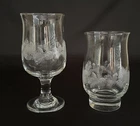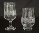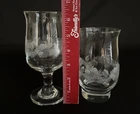 Add a touch of elegance to your drinkware collection with this set of two vintage Libbey tumbler glasses. The tulip shape and etched pinecone design make them a perfect addition to your Christmas or winter decor. Each glass has a capacity of 12 ounces and measures 5.25" in height and 2.75" in diameter. Care instructions recommend hand washing for best results. These clear glass tumblers are perfect for any beverage and will impress your guests with their vintage charm. The set includes two glasses and is perfect for one place setting. Don't miss the opportunity to add these beautiful tumblers to your collection. There are no chips, scratches or cracks that I can see or feel. Please examine the pictures carefully, these are the items that you will be purchasing.