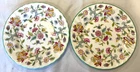 This item for sale is a pair of 2 bread plates in perfect gently used condition by Minton of England in the Haddon Hall pattern. approx 6.25 inches across with a green trim edge. Please enjoy 3 pounds free insured shipping to your USA address Please check out our other items, we probably have what you need