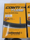 Hello and thanks for checking out this listing of a PAIR of TWO new in box Continental RACE 700c Presta valve bicycle inner tubes! These tubes were gathered as overstock from a bicycle shop that closed its doors and will come to you in the new-in-box condition seen in the included pics. For 700c or 27" rims and 25-32mm tires. For use with PRESTA valve rims, aka the screw-top type. The Race tube is an excellent choice for those looking for a respectably lightweight inner tube with some puncture resistance. 42mm Presta valve stem with removable valve core. PLEASE NOTE: Buyers will receive TWO (2) tubes per order. Please see the included pics indicating what you will receive. Standard MSRP of $18 plus shiping for a pair of these excellent tubes. Pick them up here for less with FREE SHIPPING within the USA! BUY MULTIPLES AND SAVE!!!
