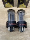 The product is a pair of vintage NOS SYLVANIA 6SN7GTB vacuum tubes with chrome tops and black plates, suitable for use in radios and other audio equipment. These tubes are known for their high quality and are sought after by vintage electronics enthusiasts. The SYLVANIA brand is well-regarded in the vacuum tube industry, and the 6SN7GTB model is a popular choice for its performance and reliability. Perfect for enhancing the sound quality of vintage audio systems, these tubes are a valuable addition to any collection of vintage electronic components. FAST SHIPPING. THIS IS NEW OLD STOCK THAT HAVE NOT BEEN TESTED BUT ARE IN GREAT SHAPE. SOLD AS A SET OF 2. THERE WILL BE MORE LISTINGS ON MY STORE WITH MORE TUBES.