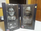 Up for bid, just in time for Halloween are the 2 New York Giants Statues seen in the photos. NFL Forever Nightmares. Team Vampire and Team Mummy. They are approx. 6 " tall. They are both still new in the box. The plastic has separated from the box a bit. Nice for giants fans to display on Halloween. Questions, please ask. Thanks!