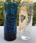 2 New Corralejo tequila tall shooter shot glasses Measures 4.5" tall Holds 3 oz Back and front of glasses are embossed