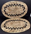2 Oval Straw Trivets Hot Pads Woven Rattan Raffia Boho Retro 17 x 11.5