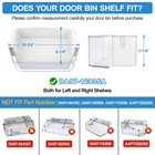 [2 PACK] UPGRADED DA97-12935A Door Bin Compatible with Samsung Refrigerator Door Shelf Replacement, Right & Left RF220NCTASR Door Shelf RF220NCTAWW, RF220NCTASG, RF220NCTASP, RF221NCTASR, RF221NCTASP Description Features: DA97-12935A Door Bin for Samsung Refrigerator Door ShelfDA97-12935A samsung refrigerator door shelf replacement replace part number: DA97-12935A, AP5651846, da63-07206,PS5575404, EAP5575404, 3377713. This DA97-12935A samsung refrigerator door bin/guard assembly for both the left and right side door,with Highest performance and superior quality. Refrigerator Door Shelves for SamsungThis DA97-12935A refrigerator door bin for Samsung fridge door shelf replacement Compatible with Samsung refrigerator parts Models: RF220NCTABC/AA, RF220NCTASP/AA, RF220NCTASR/AA, RF220NCTAWW/AA, RF220NCTASG/AA, RF221NCTABC/AA, RF221NCTASP/AA, RF221NCTASR/AA, RF221NCTAWW/AA. IMPORTANT NOTE: If your model is not listed above, this samsung da97-12935a assembly guard-ref will NOT fit. UPGRADED Food Grade Material-More StrongerUpgraded design of DA97-12935A samsung fridge door shelves made of premium thickened food grade materials which is durability, strengthen,pollution-free, safe and exact fit. Our samsung refrigerator door shelves meet OEM standard,high quality samsung fridge shelf replacement have good bearing capacity, more tougher than Ordinary plastic materials, it will last you a long time. Easy to install. NOTICE- BEFORE PURCHASEDA97-12935A door bin is approximately 10-3/4 x 6-1/4 x 3-7/8 inches-samsung door shelf replacement.To make sure get the right door bin, avoid buying wrong,please confirm whether the model matches, And read our homepage and photos in detail, If the measurements are 1/8" off then this will not fit your model. Refrigerator Door ShelfDA97-12935A samsung refrigerator shelf replacement is designed for maximum compatibility and durability, ensuring that your samsung refrigerator door shelf bin will stay in top condition. Package & Warranty2 X DA97-12935A Samsung refrigerator shelf replacement. 365-Days warranty. Please contact us at any time if the there is any problem in the product, damaged or not fit. We provide full after-sales service and will try our best to solve the problem. Did Not Find Model/ Part Number, Still Unsure If This Will Fit? Please Send Us Your Refrigerator Model Number,and We Can Confirm What Part is Correct. Product Details: Color: 2 PACK DA97-12935A Door Bin Material: Polypropylene (PP) Product Dimensions: 10.75"L x 6.25"W x 3.88"H Item Weight: 1.87 Pounds Brand: ALVAR Finish Type: Smooth Manufacturer: ALVAR Part Number: DA97-12935A, AP5651846 Item Weight: 1.87 pounds Product Dimensions: 10.75 x 6.25 x 3.88 inches Country of Origin: China Item model number: da97-12935a Samsung Door Bin Finish: Smooth Number Of Pieces: 2 Included Components: 2 X DA97-12935A Refrigerator Door Bin Shelf Batteries Included?: No Batteries Required?: No Date First Available: February 21, 2024 Handling We will ship all orders within 3 business day of payment. Delivery We Do Not Ship Outside of the Continental US. Return Policy All items qualify for returns within 30 days of receipt. Buyer is responsible for return shipping on any item that is not damaged. Feedback We take our reputation seriously, we buy and sell online, so we understand the value of trust. If you are unsatisfied with your order, please contact us and we will work with you to resolve it to your satisfaction.