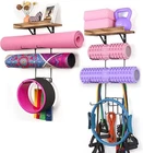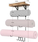 About this item 2 Pack Unique Yoga Mat Hanger: This yoga mat rack comes with floating shelves and 4 hooks, larger capacity. It can save floor space, stylish and simple design is the first choice for home gym decor. High Load Secure Yoga Mat Holder: The reinforced yoga mat holder wall mount is not easy to be deformed. The yoga mat holder is fixed to the wall through the lock between the brackets, and it will not easily fall off the wall, making it safer and stronger. The installation of the yoga mat rack only requires 5 holes in the wall, which will cause less damage to the wall. Paint Will Not Peel Off: The paint of the yoga mats holder is treated with a special process, so it will not peel off easily and will not affect the appearance and use, offers you a safe storage space for your thin and thick yoga mat.You can use bottom hooks to hang your hand towels, exercise bands, yoga mat bag and more! Home Gym Accessories: This yoga mat holder can store your yoga mats, foam rollers, exercise bands very well and more at your fingertips. It is a nifty display rack, not only display your gym equipment, but also display your bathrobes and blankets. The wooden floating shelves can also display small objects such as yoga block, picture frames, water cups, etc., to add color to your room. Easy Installation & Ideal Gifts: The yoga mat storage comes with required hardwares and clear instruction for quick installation.