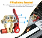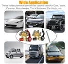 Specifications: Type:Car Battery Terminal Connector Way:4 Way Material: Pure Copper with Tin plated+Aluminum alloy+iron Positive taper hole size:17.5~19.1mm Negative taper hole size:15.9~17.5mm package: 2 pair Battery Terminal Connector 2 Hexagon wrench NOTE: Do not overtighten the screws Car battery pile heads, power connection, stable current, protecting battery. With power-off protections, safe and reliable use. Easy to install and reliable grip. Strong corrosion resistance, strong conductivity, long service life. 4 Way Battery Terminal,Designed for multiple cable connections. For wires diameters 4.1 – 8.2mm (AWG gauges 0 – 16) or section 13.5 – 53.5mm². Minimum wire size: 16mm (5/8"). Max wire clamp: 9.5mm/0.37in, Mini wire clamp: 6.5mm/0.25in. After installing battery, connects to the battery posts by pressing down the lever, so no tools needed Suitable for Most Battery models. Works great for replacing worn out and corroded terminals can reduce voltage distortion and transmission loss can be used for Cars, Vans, Caravan, Motorhomes, Truck Batteries, Car Audio, etc. Just make sure to connect the correct terminal for the correct polarity Specifications: Type:Car Battery Terminal Connector Way:4 Way Material: Pure Copper with Tin plated+Aluminum alloy+iron Positive taper hole size:17.5~19.1mm Negative taper hole size:15.9~17.5mm package: 2 pair Battery Terminal Connector 2 Hexagon wrench NOTE: Do not overtighten the screws Payment Delivery details Terms of sales About us Payment 1. Payment must be received within 3 days from the date of purchase. 2. Orders will be processed instantly and dispatched within 1-2 days, so we do NOT accept any email/message note after you place orders. 3. IMPORTANT! PLEASE READ! Buyers are responsible for import duties, custom fees and taxes, if any. Please check with your country's custom office to determine the additional costs impose on the item prior to buying. Delivery details 1. We offer WORLDWIDE SHIPPING. (Except China) 2. Orders will be processed and dispatched within 24-48 hours after payment is clear. 3. We only ship to confirmed eBay addresses. Your eBay address MUST MATCH your Shipping address. 4. If you have not received your shipment within 30 business days from payment, please contact us. We will track the shipment and get back to you as soon as possible. Our goal is customer satisfaction! 5. Please note that estimated delivery time is depended on destination countries, and may subject to customs clearance process, and weather condition in your area. Country Delivery Time (days) Not including Handling time, weekend, and holidays 9-12 13-18 19-24 25-29 30-35 >35 United States 5% 50% 30% 11% 5% Refund United Kingdom 10% 63% 19% 3% 4% Refund Australia 21% 50% 14% 7% 7% Refund France 11% 29% 44% 10% 7% Refund Germany 11% 22% 30% 21% 16% Refund Canada 10% 37% 31% 18% 4% Refund Spain 4% 25% 48% 13% 11% Refund Terms of sales 1. We offer 14 days return policy. Please contact us within 14 days t from the date you receive your order if you have any issues with the product and would like to return. 2. All returned items MUST BE in the original packaging and you MUST PROVIDE us with the shipping tracking number, specific reason for the return, and your eBay ID. 3. We will refund YOUR FULL WINNING BID AMOUNT, upon receipt of the item in its original condition and packaging with all components and accessories included, AFTER BOTH Buyer and Seller cancel the transaction from eBay. OR, you may choose to have a replacement. 4. Buyer is responsible for return shipping cost. About us 1. We strive for our customer satisfaction at best possible. If you have any questions, please feel free to email our service specialists 24 Hours a Day, 7 Days a week. We will reply you ASAP. If no response within 24 Hours, please check the spam in your mail box. 2. We greatly appreciate your POSITIVE feedback. Please do NOT leave negative feedback without asking for help. Our aim is to provide Top Level Customer Service, normally so we will try our best to solve any problem you have. 3. Please DON'T leave negative or neutral feedback if you haven't received item in 30 days, because we have mentioned the shipping time repeatedly.