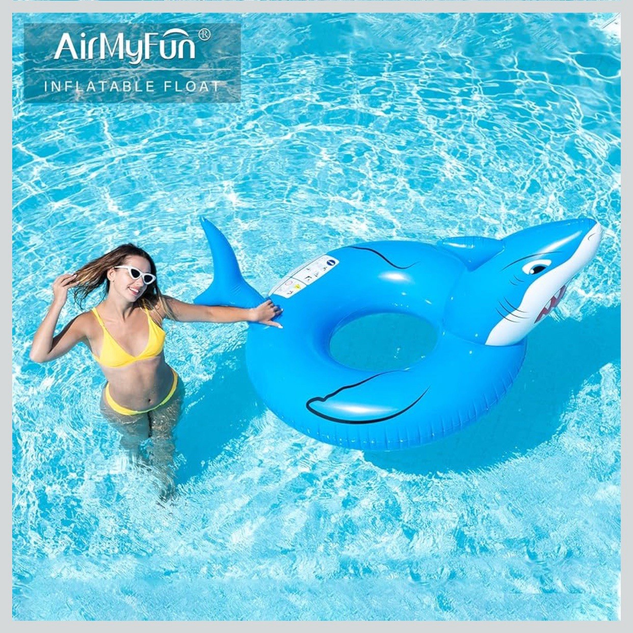 2 PCS.The inflated size is 45 inches and suitable for ages 3 and older. The head of shark is 32 inches high and its whole body is 63 inches long. • Unique Design: When you swim with a shark tube on the sea, the shark head will be exposed to the sea surface, and you would be the king of the sea because you have tamed a fierce shark. Made of PVC material, durable and press resistant.the valve is easy to inflate in 3 minutes or squeeze out the remaining air to deflate. The shark float is a perfect party supply for kids and adults in summer. Perfect for the community pools, hotels, beaches, Rivers and water parks.
