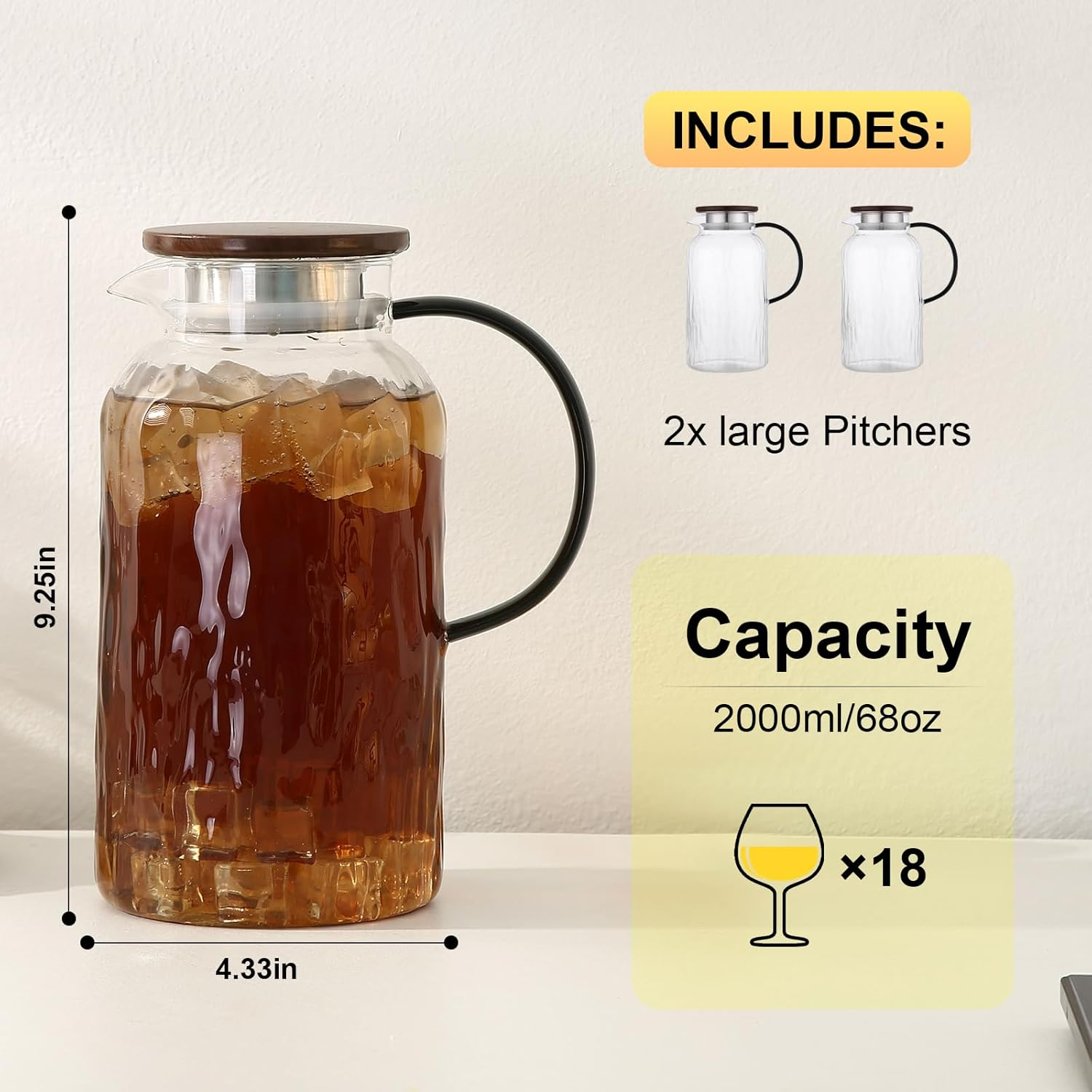 Store New Arrivals Add to Favorite View Feedback Contact 2 Pack 68 Oz Glass Pitcher with Lid and Handle,Vintage Glass Water Pitcher for F Description Item model number CYXSM313 Capacity 2 Liters Number of Packs 2 Color brown2 Material Wood, Stainless Steel, Glass Country of Origin China Item Weight 2.77 pounds Shape Round With Lid Yes Material Feature Dishwasher Safe Model Name CYXSM25313 Pitcher Form Traditional Included Components no Product Dimensions 4.5"W x 9.8"H Elevate Every Pour – Where Function Meets Style Whether you're relaxing on the patio with a glass of iced tea or hosting weekend brunch, this glass pitcher with lid is the perfect combination of beauty and function. Designed with a crystal-clear body, a sleek stainless steel and wood lid, and dual pour spouts, it’s a must-have for any kitchen or outdoor setup. Features You’ll Love: Wood + Stainless Steel Lid – A fresh take on a classic glass pitcher. The lid blends natural wood with durable stainless steel for a tight, splash-free seal. Dual Spouts for Effortless Pouring – Choose between a filtered spout for infused drinks and an open spout for smooth, fast pours — perfect for tea, juice, or even sun tea glass jars for outside use. Large 68 oz Capacity – Ideal as an iced tea pitcher, lemonade pitcher, or juice jug. Serve the whole family or a party without constant refills. Stainless Steel Water Outlet – Rust-resistant, easy to clean, and designed for lasting use in this modern glass iced tea pitcher with lid. Ergonomic Handle – The thick, sturdy handle makes this one of the most comfortable glass pitchers with handle and lid you’ll ever use. Dishwasher Safe & Fridge-Ready – Made from heat-resistant borosilicate glass, this glass pitcher with lid can handle both high temperatures and cold storage. It’s dishwasher safe for easy cleanup — ideal for pitchers for drinks, juice pitchers, or your go-to glass juice pitcher. From fresh lemonade to infused spa water, this tea pitcher adds elegance to everyday hydration. It’s a versatile, durable choice among glass pitchers, whether you’re indoors or out — making it the ideal pitcher for drinks, entertaining, and more. Product Description ABOUT US We offer the best prices around on high quality products. Our E-store includes media such as books, movies, music and games while offering electronics, toys, sporting apparel, clothing, tools, general home, garden items and more. SHIPPING We are always working hard to ensure your package arrives as soon as possible. Please understand that some factors like weather, high postal traffic, and the performance of shipping companies are outside of our control. We offer free shipping to the lower 48 states and ship within 2 business days of payment, usually sooner. We do not accept P.O. Boxes. Please provide a physical address. For shipping outside of the continental USA, we only use eBay's Global Shipping Program.The item is shipped to KY and then sent to the rest of the world. International customers are responsible for all duties and taxes. Continue to check out in order to calculate costs for shipping the item to your country. Messages regarding eBay's Global Shipping Program MUST be directed at eBay EXCLUSIVELY. RETURNS We offer a 30-Day Return Policy on items which you are not completely satisfied with. You have the option for a full-refund or an exchange of the item. No returns are available on items shipped outside of the USA. PAYMENT We accept PayPal. CONTACT US This page content is yet to come Please ad us to your favorite seller and visit again later Thank You CUSTOMER SATISFACTION We try our very best to make sure every customer is completely satisfied. If there's a problem, message us! We're happy to help. WE ACCEPT Copyright © 2021 AutoDS. | All Rights Reserved