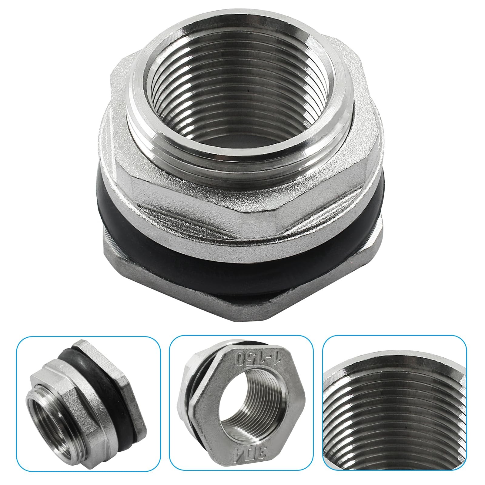 Why Choose focus on retail and wholesale hardware items and other . The design and optimization of all products are based on opinions and suggestions. Our Credo: What customers Need, We provide What! Stainless steel thru-bulk fitting features a precision machined design with a reverse-threaded lock nut for simple installation, ensuring a secure connection with minimal effort. Specification Material: Stainless Steel Size: 1 inch Package Content 2 x Compression bulkhead fittings Warmly Note 1. The colors may have difference as the different display, please understand. 2. Please allow 1-2mm error due to manual measurement, please make sure you do not mind before you bid. [ Premium Material ] Made of high-quality 304 stainless steel, providing excellent corrosion resistance, rust-proof durability, high-temperature ductility. [ Sturdy Material ] Equipped with a gasket that contours to the shape of the tanks or barrels, providing a tight seal to effectively prevent leaks. [ Thread Size ] Available in various sizes (1/2", 1", 3/4") with nominal pipe sizes that ensure compatibility with a range of pipe fittings. [ Maximum Pressure ] The fittings can handle a maximum working pressure of 150 PSI, ensuring reliable performance in high-pressure applications. [ Wide Application ] Suitable for use in a variety of environments, including water tanks, water towers, homemade water storage barrels, aquariums, and various plumbing fixtures like pipes and faucets.
