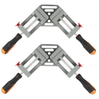 RIGID - The double handle right angle clamp forged with thick aluminum alloy material, lightweight but practical to last, thus the double handle right angle clamp is easy to carry and use. Steel solid threaded screw rod is durable and not easy to break or bend. QUICK RELEASE - 2 red quick-release buttons on both sides of corner clamp with quick release are metal-made, which is more durable than plastic . Press down the button for quick setup and adjustments or instant release of workpieces. EASY TO GRASP - With a maximum clamping range of 2.56 inches, our double handle corner clamp comes with anti-skid rubber handles and adjustable jaws for fast clamping wooden, glass, metal or plastic pieces together at 90 degrees. WIDELY USES - 2-pack 90 degree right angle clamps are suitable for drilling, welding, framing, or doweling to make cabinets, boxes, photo frames, canvas frames, aquarium, etc. A gift for woodworkers, gardeners, mechanics, handymen and DIY'ers. BUY WITH CONFIDENCE - After you receive the double handle right angle corner clamp. If you dislike or have any problems with them, please us in feel free. You can get a 30-day worry-free and we will reply to you the first time.
