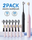 Model 1 BRAND NEW 2 PACK ELECTRIC TOOTHBRUSH: Our package includes 2 sonic electric toothbrushes and 12 soft bristle replacement brush heads.We promise: 1-year assurance, if you have any problems, please contact us, we will give you a satisfactory customer service. POWERFUL SONIC CLEANING :New Upgraded Electric Toothbrush with the latest sonic technology,The vibration frequency can reach up to 38,000 times per minute, along the gum line for exceptional clean and remove up 100% plaques, whitening your teeth and improving your oral health in two weeks better than a manual toothbrush. kid electric toothbrush THE SET INCLUDES 12 REPLACEMENT BRUSH HEADS: capable of deep cleaning of tooth gaps; The rounded end design is gentle and safe for the gums. Adult and children's electric toothbrushes are equipped with 12 brush heads and have a lifespan of 24 months. You don't need to make frequent purchases. Please remember to check if the sealing bag of the brush head has been opened before use. Each of our brush heads is individually packaged. The bristles may deform during transportation. In warm water above 48 degrees, the bristles will return to their original state within 20 seconds. 5 HIGH-PERFORMANCE BRUSHING MODES :cleaning (strong), whitening (gentle), polishing (strong reversal frequency), soft (gentle reversal frequency), and care (soft), suitable for different teeth and gum conditions, so you can choose different modes according to your preferences and dentist's advice. Compared to other toothbrushes, it can remove 10 times more plaque in hard to reach areas, achieving deep cleaning. 2-MINUTE TIMER AND 30 SECOND PAUSE REMINDER: Equipped with a built-in 2-minute smart timer, your teeth cleaning is more efficient and comprehensive. Every 30 seconds, it reminds you to move to the next quadrant of your mouth, which takes a total of 2 minutes (4 quadrants). This is the recommended brushing method by professional dentists. You can also press and hold the button for 2 seconds to turn off the electric toothbrush in any mode. Model 2 2-Minute Smart Timer:The 2-minute smart timer provides an interval pause every 30 seconds, reminding you to balance the four areas of the oral cavity and achieve the recommended brushing time and habits for dental professionals. IPX8 waterproof, easy to rinse with water after each use Two sets and 12 brush heads: The bristles are made of pointed soft brushes, which are soft, wear-resistant, and non absorbent, providing you with a safe and gentle brushing experience. The pointed bristle soft brush head perfectly fits each tooth and cleans deep into the gaps, better removing stains Efficient Oral Care: This adult electric toothbrush features a powerful motor that can vibrate 38000 times per minute, helping you continuously and effectively clean your teeth and gums. Compared to regular manual toothbrushes, it can remove more plaque and stains, and improve gum health better than manual toothbrushes Hidden Charging Cable:: The electric toothbrush is equipped with a hidden USB charging cable at the bottom of the toothbrush body, which is convenient for charging various charging blocks and avoiding loss. The hidden USB charging cable allows you to travel in various occasions without carrying excess charging cables. After fast charging for 2 hours, it can be used for up to 30 days (2 minutes/2 times a day) 6 Optional Modes:Customize 5 brushing experiences according to your specific needs: clean,white,polish,soft,massage,care. 6 different modes are suitable for different tooth and gum conditions, which can comprehensively care for your sensitive mouth and teeth Thank You