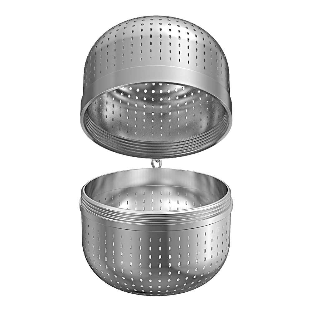 It can be used with regular cups, teapots, or even stock pots. It's perfect to be used for loose leaf tea and coffee. It also can work asbouquet garni for spicesseasonings. The attached hook lets the ball hang from your teapot or panhandle and it is very easy to take the ball out with the hook. The tea infuser is made of 18/8 stainless steel. Package includes:2 Tea infusers and 2 Drip trays. Made of food grade 18/8 stainless steel, great durability. Brew your loose leaf tea with ease. Now you can replace your old tea bags with this tea steeper and enjoy drinking fresh flavored tea. Fit nearly all the teapots, mugs or cups of different size. The tea strainer is also great to brew coffee, spices and seasonings.