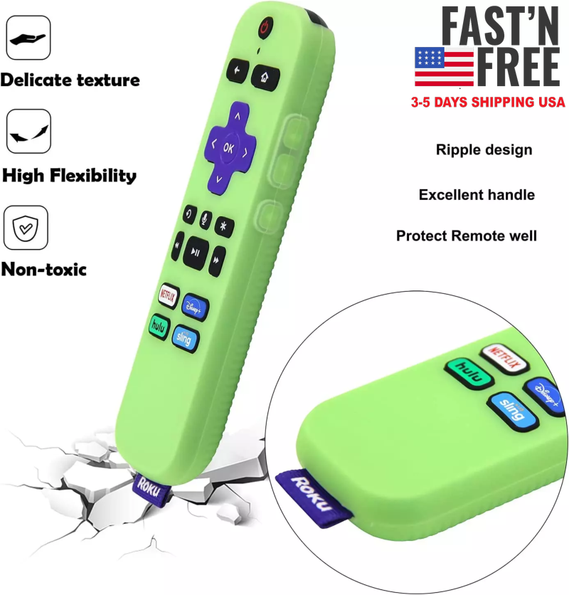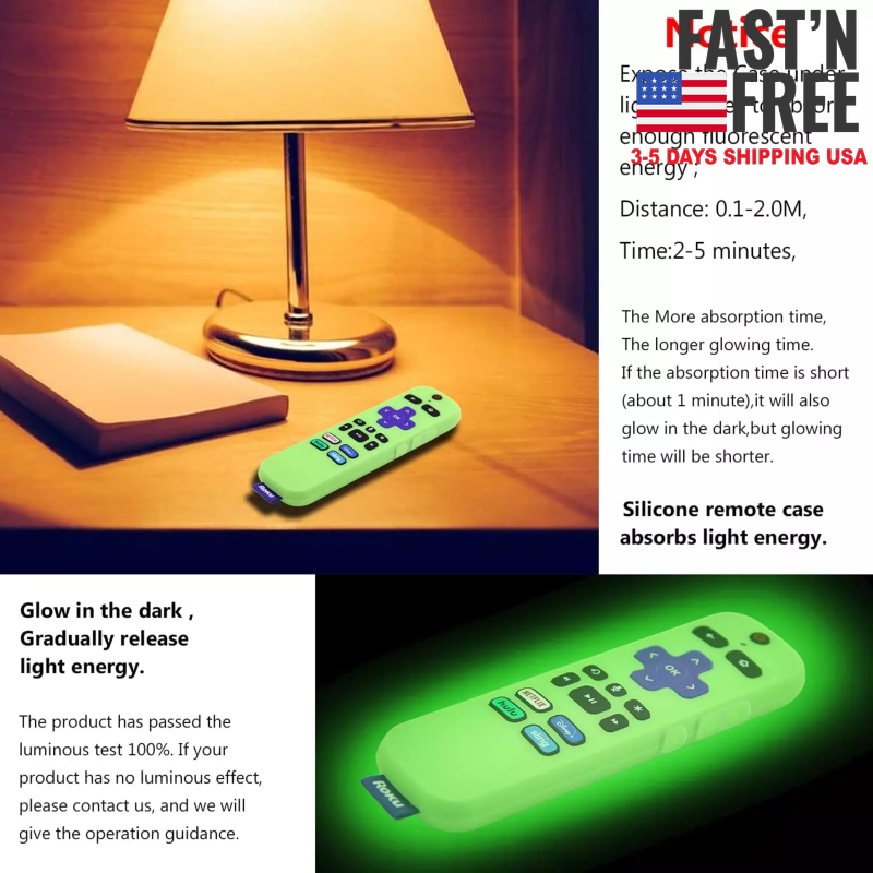 [2 Pack] Remote Cover (Glow in The Dark) Compatible with Roku Voice Remote, Pinowu Anti Slip Silicone Cover Compatible with Roku Players and Roku TVS Voice Remote (Green and Blue) US Warehouse - FREE & FAST Shipping SALE!!! DESCRIPTION: [EASY TO FIND YOUR REMOTE] - Great fit for your Roku Voice Remote, with bright color make you to locate your remote quickly when you have multiple remotes mixed together. And these covers can glow in the dark, you can find it easily at night. (Note: Please expose it under strong lights for 5-10 minutes if it doesn't glow in the darkness.) [COMPATIBILITY] - The slim case was compatible with Roku Voice Remote, suitable for Roku Express 4K+ 2021, Roku Ultra LT 4K Enhanced Voice, Roku Voice (RCAL7R), , Roku Premiere+ 3921 (2019), Roku Streaming Stick+ 3810, Roku Streaming Stick+ 3800 remote controller. (NOT for Roku Voice Remote Pro, no headphone jack hole). [NO MORE DROPPING ROKU VOICE REMOTE] - The grippy silicone keeps remote from sliding off furniture, and the bold color makes it stand out, great help to stop losing track of the remote, water ripple at the back makes it even easier to grab if it slips between cushions. [DON’T WORRY ABOUT DIRTY ON REMOTE ] - As you know there are many small holes in the remote control, you can't clean it, with the case on, you don't have to worry about the remote lite being dirty by your child’s dirty hands, don’t worry your cats knock remotes off the table. [SECURE BATTERIES STAY WITH BACK] - The silicone case cushions the remote and avoid the normal separation of the back and batteries from the remote when dropped on the floor. Also makes the remote easier to see and grip with the bright colors. Brand PINOWU Color Green glow and Blue Glow Compatible Devices Roku Voice Remote Form Factor Cover Shell Type Soft SHIPPING: It takes about 3- 6 business days for delivery for USA order , Business days exclude weekends and holidays RETURN & EXCHANGE: We stand behind the quality of our products and guarantee our workmanship 100%. Any defects or errors on our part will result in a replacement at no charge. We typically do not accept returns due to user error such as incorrect selection of sizes, designs, colors, etc. We just can accept return for damage or bad printing result, wrong size and design from us Therefore, if there are any issues about the item, please do not leave negative/neutral feedback, please contact us and give us an opportunity to resolve the problem first Before opening a return case on eBay, please contact us with the reason for return and send us proof like the picture, it will be easier for us to handle your problem. If you were pleased with this transaction, it is really appreciated to give us positive feedback, thanks! CONTACT US: If you have any question, feel free to contact us. We endeavor to respond within 24 hours. If you are not satisfied, please contact us immediately. We will do our best to resolve your concern FEEDBACK: If you are happy with your purchase, PLEASE take a moment to leave Positive feedback for us. We really appreciate that. If you are not happy with the purchase, PLEASE contact us to resolve the problem. We are always here to give you the best solutions. THANK YOU SO MUCH GOD BLESS YOU AND FAMILY!!!