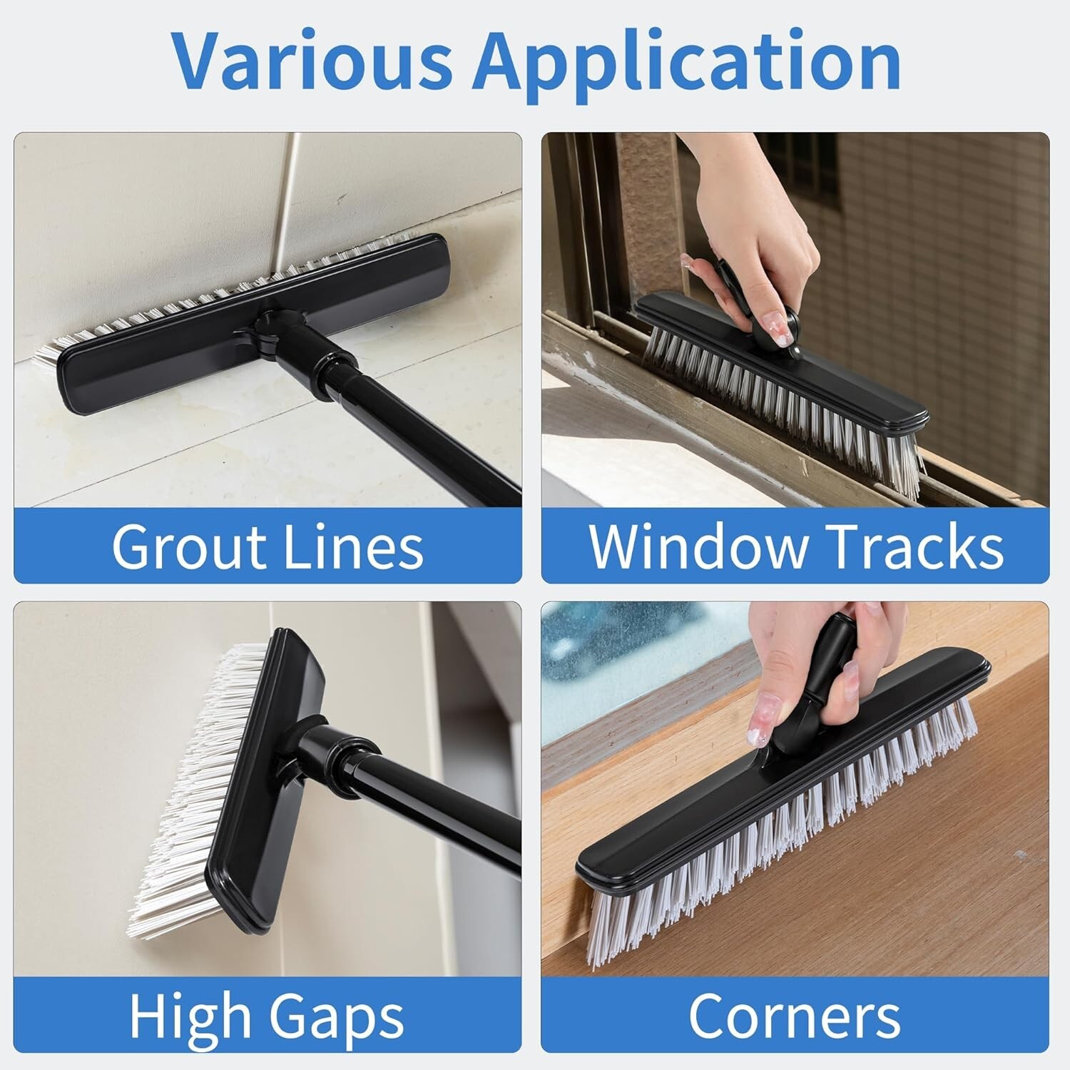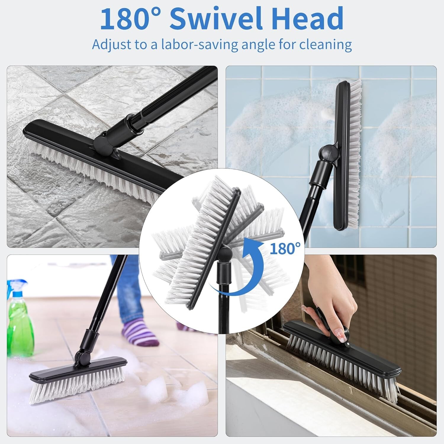 2 Pack Grout Brush with Long Handle 50 Inches Swivel Floor Scrub Broom New Color: Black Handle Material Plastic Specific Uses For Product: Floor Product Dimensions: 17.24"L x 3.85"W x 2.28"H 2 Pcs V-Shape Grout Cleaning Brush: JEHONN V-shape stiff bristles grout scrub brush fits perfectly into grout lines, gaps, corners and window track. Tired of cleaning tough stains in gaps with toothbrush? This brush would be your best cleaning partner 180°Rotating Head: This grout brush for tile floors features with a 180° swivel grout scrubber head, which allows you to scrub away grimes and dirt from different angle with ease. Package comes with 2 packs of tile brush heads, you can replace for use 50 inches Long Handle: JEHONN shower broom includes 3 metal extension poles, can be extended from 20” to 50”. So you can stand upright for comfortable scrubbing instead of bending over to clean. It helps protect your waist and back from pains Multiple Application: This grout brush cleaner with long handle can tackle grimes and stubborn stains on grout, corners, gaps, window track, baseboards from kitchen, bathroom, shower, hallways, deck, patio, walls Bathroom Scrub Brush: JEHONN has committed to cleaning products for more than 10 years. Want to get a sparkingly clean house? Try this grout scrubber brush Return Policy: We offer a 30 day return policy from the receiving date. Please contact us for a Free Return Label. Please use our return label so it will go back to our supplier and we can do a refund or replacement afterwards. Feedback: Your satisfaction is very important to us! If you have any problem with your order, please contact us and we will do our very best to make you satisfied. As long as you are happy with your purchase, please leave a positive feedback for us. We will always leave you a positive feedback in return. If you have any problem with your purchase, please do not leave a negative feedback. Please Contact us ... and your issue will be solved quickly and positively We are a small family-owned business trying to make a living, not a huge company that does not care ... We will ALWAYS do our best for you!