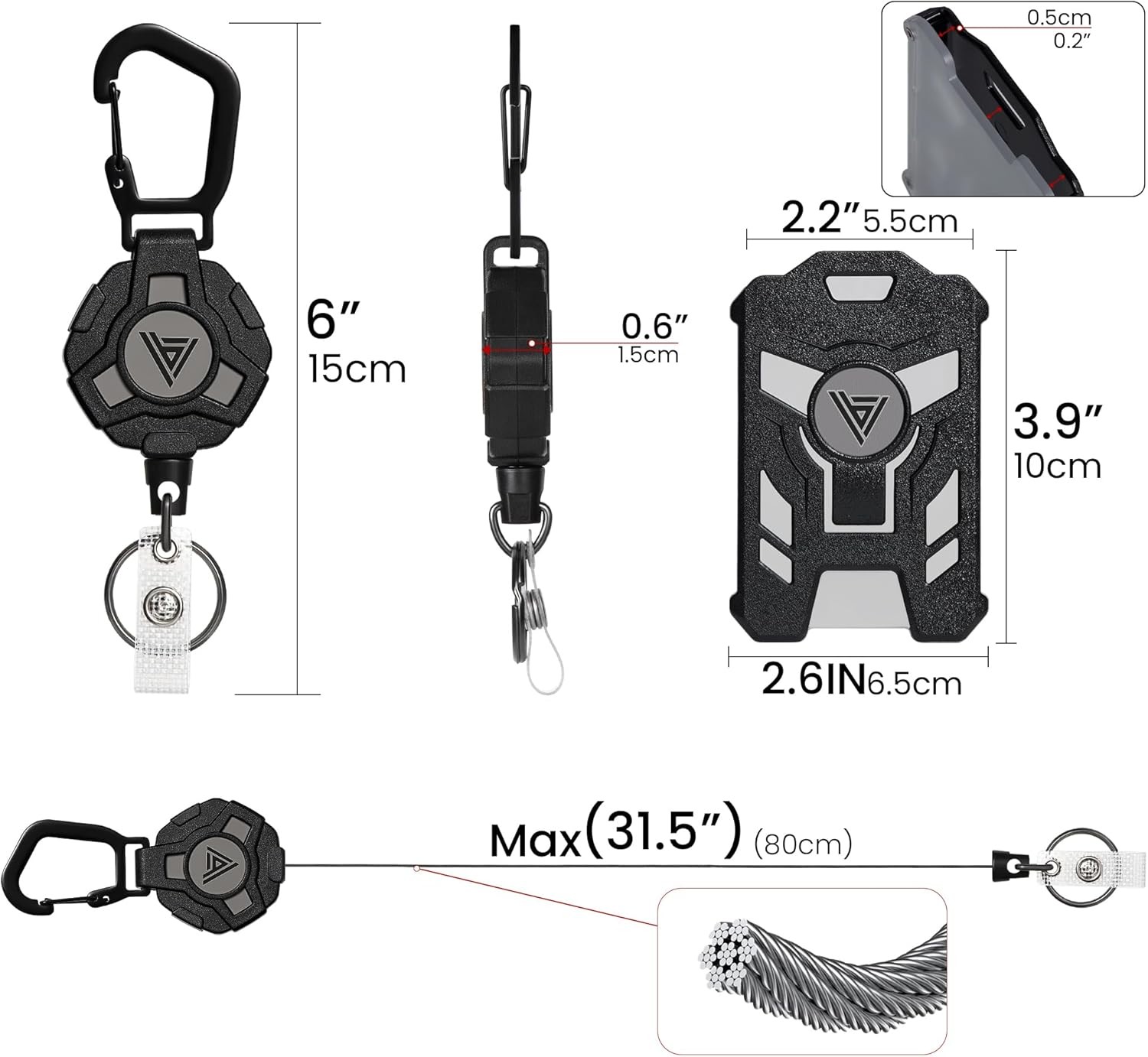 Free eBay listing template designed by dewiso.com bemece 2 Pack Retractable Keychain with ID Card Holder, Heavy Duty Carabiner Badge Holder with 31.5’’ Steel Retractable Cord, Includes Clip Badge Reels for Indoor and Outdoor Use FREE AND FAST SHIPPING! Portable Hanging: Double hook design, zinc alloy buckle, anti-corrosion and not easy to deform, easy to press, portable hanging. The back comes with a metal snap, which can be clipped to your belt, backpack and anywhere you need it ABS Shell: Retractable Keychain shell is made of high quality ABS material, rust-proof, durable and impact-resistant. Equipped with a key ring and buckle strap, classify and hang small objects, keep the pendant neat Upgraded Steel Ropes: Thickened steel rope, rebound load capacity up to 9 ounces, anti-abrasion and anti-breakage, maximum stretch length up to 31.5 inches. Built-in stainless steel spring bearing, easy to pull and wear-resistant Exquisite ID Badge Holder: PC shell with transparent front cover, reinforced and durable, not easy to crack, the middle of the elastic clip for card storage and fixation, the bottom of the slot is convenient for card removal Multi-purpose: The set includes a hiking buckle and a ferrule. Portable and durable with excellent performance, widely used in office, home and outdoor activities such as fishing, hiking and travelling Show more Product We offer a 30-Day Return Policy on items which you are not completely satisfied with. You have the option for a full-refund or an exchange of the item. No returns are available on items shipped outside of the US . Shipping We offer Free Shipping to the US and ship within 2 business days of payment, usually sooner. We use UPS express shipping. That's why your products are usually delivered within 3 days . Contact We try our very best to make sure every customer is completely satisfied. If there's a problem , message us! We're happy to help. 24/7 live chat available.