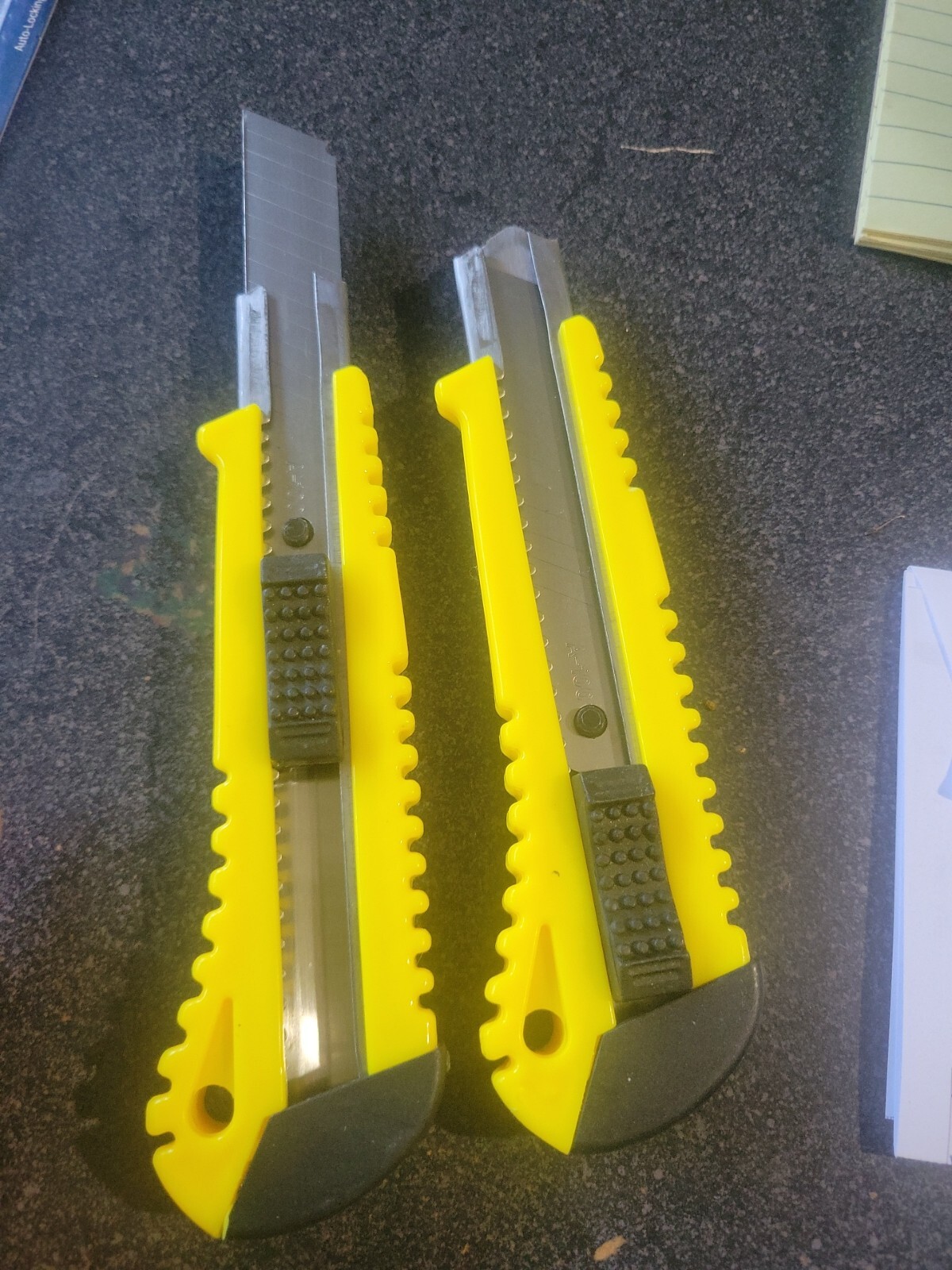 2 Pack New Box Cutter Industrial Strength - Simple push button to change blade length - Retractable blade Color: Yellow/Black