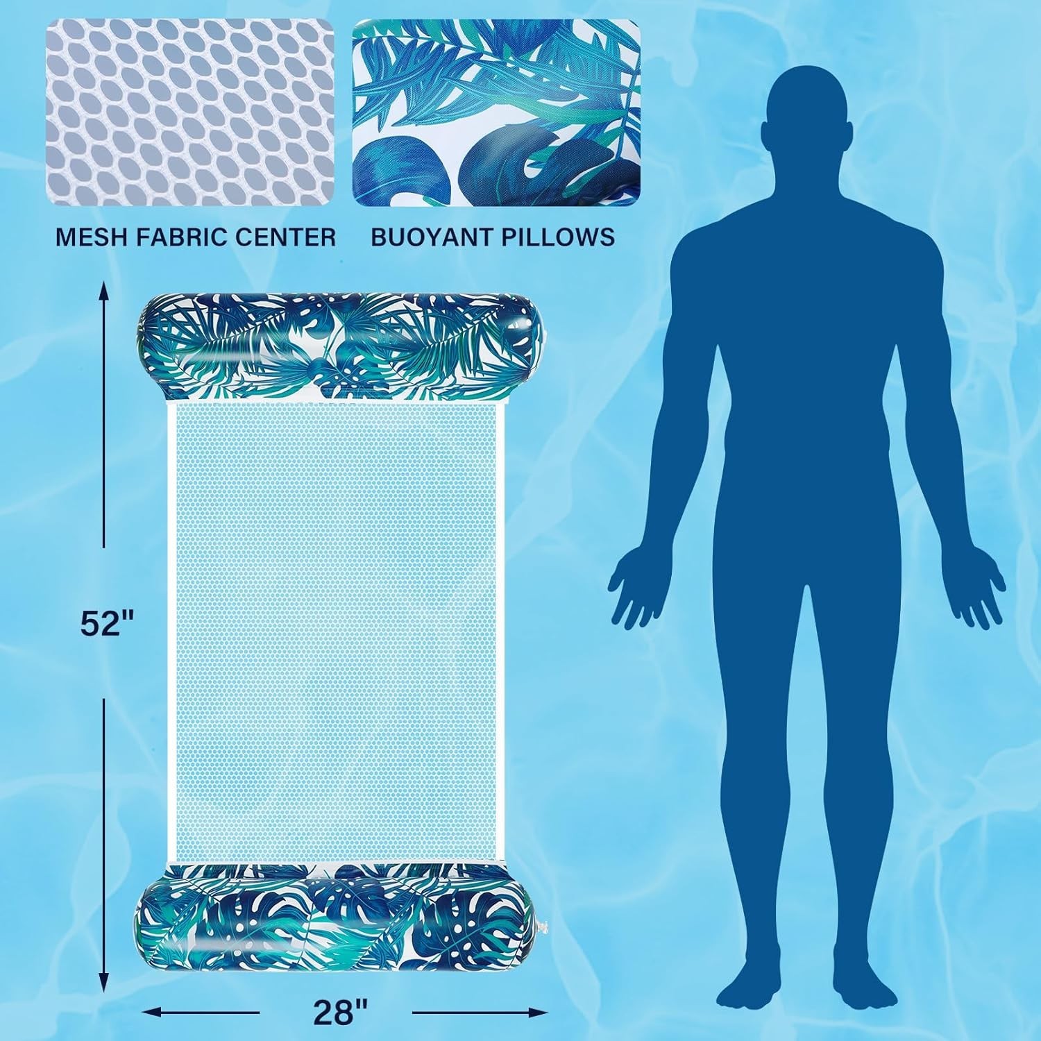 100% Money Back Guarantee if you are not satisfied with your purchase! ____________________ Description: Pool Floats - 2 Pack Pool Float Adult, 4-in-1 Multi-Purpose Water Hammock, Floaties for Adults, Inflatable Pool Floats for Vacation Fun and Rest ● Comfortable Pool Floats - Our pool floaties are easy to get on and off in water. No need to jump or flop. The headrest and footrest provide good support and comfort. You can sit or lie down on this multi-functional pool hammock float to relax and have fun in summer. ● High Quality Materials - Crafted with thick and durable PVC materials, our pool hammock floats for adults are tear-resistant, lightweight, and effortlessly cleanable. These high-quality pool floats adults are designed for long-lasting use and are ideal for travel. ● 2 Pack Floaties for Adults - Each Hammock Pool Float measures 52" x 28" and supports up to 265 lbs. Suitable for individuals between 4 and 6 feet tall. NOTE: For users 13 and older; under 13s should use it with adult supervision. ● 4-in-1 Pool Float - Easily transform it into a hammock, lounge chair, drifter or exercise saddle. You can adjust it to the comfortable position you want to while on the pool floaties. ● Easy to Carry - Our foldable water hammock for adults is incredibly portable. The inflatable part of the Pool Hammock Float features a leak-proof design and can be easily inflated even with just your mouth, making it perfect for a variety of leisure water activities. Take it out and enjoy the fun! 100% Money Back Guarantee: We offer 30 Day Money Back Guarantee from the day you purchased if you’re not satisfied with your product. If you have any questions about our products, please contact us as soon as possible. Customer satisfaction is our absolute priority. Shipping: We are always working hard to ensure your package arrives as soon as possible. Please understand that some factors like weather, high postal traffic, and the performance of shipping companies are outside of our control. We offer free shipping to the lower 48 states and ship within 3 business days of payment, usually sooner. We do not accept P.O. Boxes. Please provide a physical address. You will be notified via eBay messages as soon as your items ship. Delivery: We will ship out the item in 2-3 working day after receiving the payment. Usually the delivery takes 2-5 business days. If you don't receive the items after 10 days, please feel free to contact us. You will get a replacement or a full refund. Please DO NOT open a return request or leave negative feedback without asking for help. Returns (Get Free Return Label): We offer a 30-Day Return Policy on defective/wrong items or items which you are not completely satisfied with. You have the option for a full-refund or an exchange of the item. No need to buy eBay return label. Contact us via eBay messages and get free return label. Returned items must be in all of the original packaging and include all of the original accessories or items that came with it. The item and package should be in original condition. Contact Us: Any queries or issues incurred, please feel free to contact us via eBay message, we will get back to you within 24 hours. Please DO NOT open a return request or leave negative feedback without asking for help. Feedback: Your feedback is very important to us. After you get your package and you are satisfied with our service, please leave us positive feedback. We are highly appreciated for your POSITIVE feedback and 5 stars. Enjoy shopping.