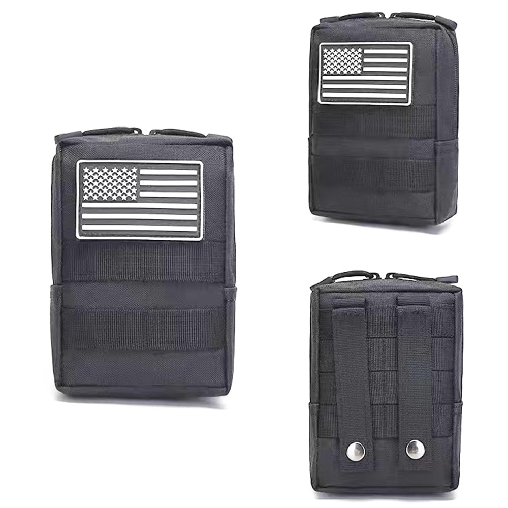 【Tactical Molle Bag】The Molle bag has 1 main compartment and 1 inner pocket, perfect for camping, hiking or daily use, it can store your cell phone, key chain, flashlight, GPS device, first aid kit, small tools, and everything else you need for easy access. 【1000D Nylon Fabric, Durable】Made of 1000D nylon fabric and double stitching, the military grade material greatly enhances the durability for daily use and prevents tearing. The waterproof coating prevents items from getting damp in wet environments. 【Molle Additional Pouches】There are two straps with metal buckles on the back, which can be attached to a combat vest, tactical backpack, tactical belt or other tactical gear. As an extra outer pocket, it can add a lot of storage space for small items in the main bag. 【Miscellaneous Pouch】The molle system makes the molle pouch more practical and helps to quickly access items. Can be used as a small tactical pouch, molle pouch for combat vest, belt pouch, cell phone pouch, EDC pouch, and small tool pouch. 【7 colors available】Black, Black Camo, Army Green, Khaki, ACU, CP, Red. The actual color of the product may have color difference. If you mind, please contact us and we will solve it for you. One item includes two tactical pouches and two U.S. flag patches. Molle Pouch Size: 6.1 "L x 4.5 "W x 2.2 "T.The Molle Pouch is made of 1000D nylon fabric and double-stitched seams.The military-grade material greatly enhances durability for everyday use and prevents tearing. The interior waterproof coating prevents items from getting wet in humid environments. 【Molle Additional Bag】The Molle bag has 1 main compartment and 1 inner pocket, perfect for camping, hiking or daily use, you can also use your imagination to mount it on your bike or add it to your service dog's vest. The multifunctional pouch will make your life easier and more enjoyable. 【Miscellaneous Pouch】The molle system makes the molle pouch more practical and helps to quickly access items. Can be used as a small tactical pouch, molle pouch for vest, belt pouch, cell phone pouch, EDC pouch, small tool pouch. Holds cell phones (4.7-6.7 inches), key chains, flashlights, GPS devices, first aid kits, small tools, and everything else you need Two vertical straps and a metal snap closure on the back allow the military pouch to be added to a combat vest, tactical backpack or other tactical gear as an additional external pouch. This versatile pouch adds tons of storage space for small items that would otherwise be buried in your main backpack. The two-way zipper allows you to quickly zipper up from either side or access just one side of the molle pouch without having to open it completely. Perfect for adding extra storage to your backpack, this molle accessory pouch is easy to install and can hold anything you need.