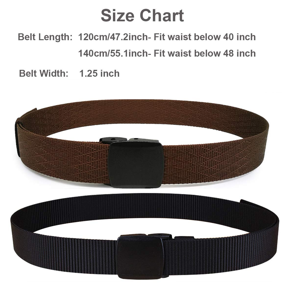 NO METAL BELT: If you are fed up with alarming when passing through airport or factory checkpoints, If you or your friends are metal allergy, Our 2 Pack narrow belts are Non-metal construction overall, YKK plastic buckle, nickel free, anti-allergic NYLON BELT: If you want to try a belt no leather. We are premium nylon strap belts, high strength, impact and abrasion resistance, comfort and dry fast in air. Can meet your needs to be the daily casual belt and outdoor work belt SUPER LIGHTWEIGHT BELT: Our nylon belts are very comfortable and lightweight for work occasion. Wear all day without any load for your waist TACTICAL DUTY BELT: These military style belts can not only as your daily belts to match your jeans, dress shorts, military uniforms but also as outdoor belt in hiking, camping, trekking, climbing. Sturdy, heavy duty for CCW, EDC, tool, molle pouches DIY FOR WAIST BELT: This web belts size 1.25” wide, length 47.2 inch that fit for waist below 40 inch. Holeless design, removable the buckle to trim the length you no need and trimmed edge with a lighter, then put on the buckle again to complete. Nice FIT